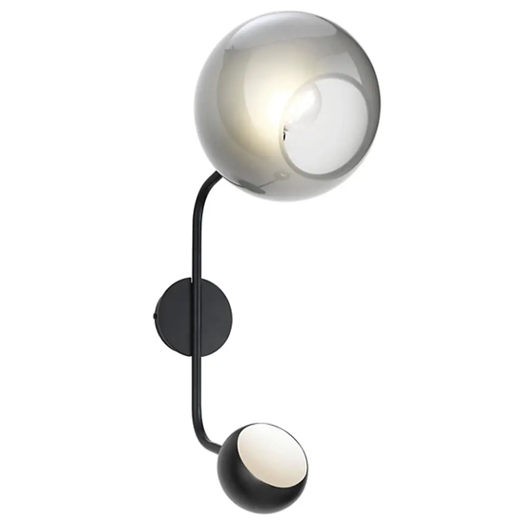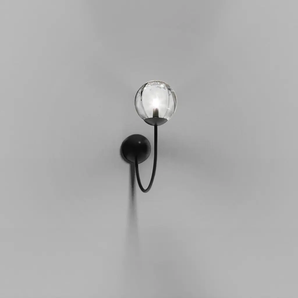 Vistosi Puppet Wall Sconce Light In Crystal Transparent Glass & Matt Black Frame