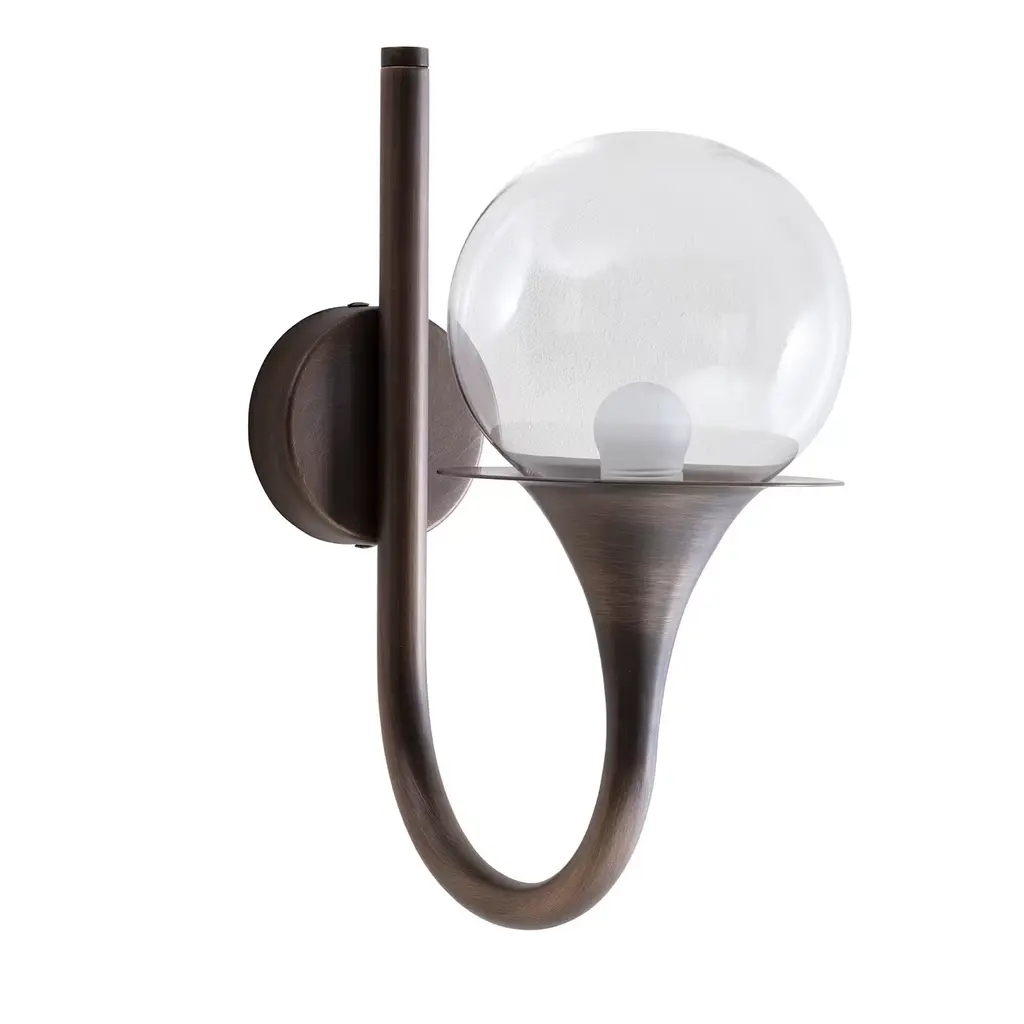 Vistosi Puppet Wall Sconce Light In Smoky Transparent Glass And Matt Black Frame