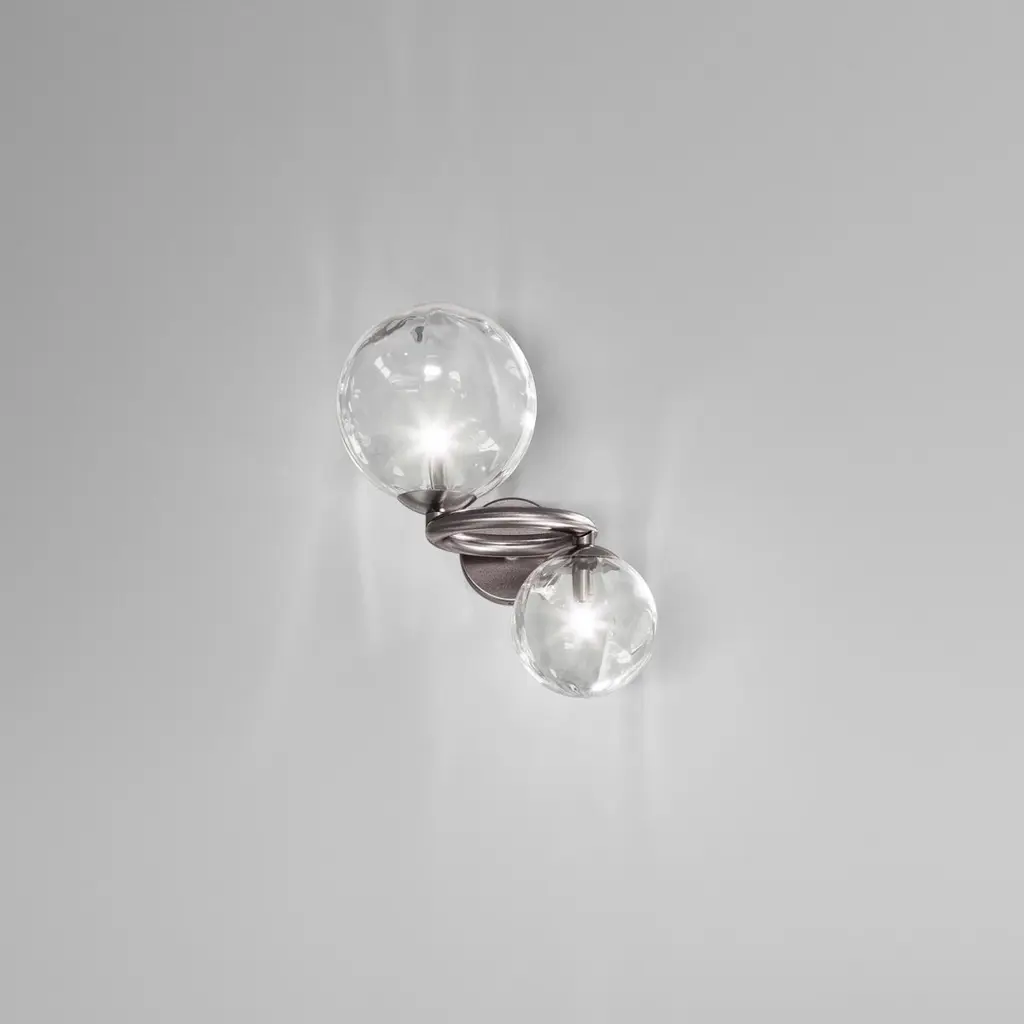 Vistosi Sconce Light In Crystal Transparent Glass And Matt Black Nickel Frame