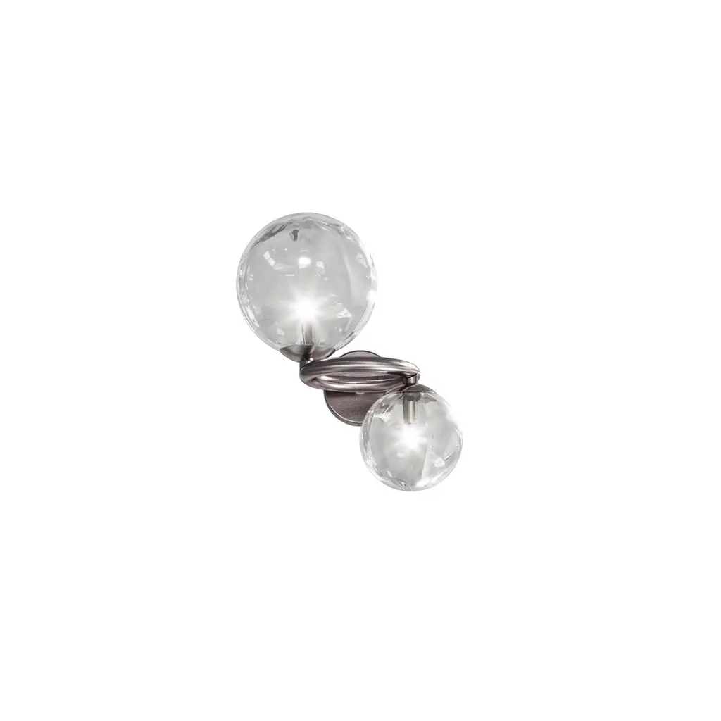 The distinctive feature of this model from the Puppet Ring collection are the rings with increasing diameter. They can be combined in different sequences to form the framework on which the precious glass spheres in three different sizes are placed, blending with the structure thanks to a preformation inside the blown glass. Aesthetically light and elegant, Puppet Ring ethereally combines crystal, smoky, amber and shaded white glass with gold and black matt nickel finishes.Specifications:Material: GlassLight source: G9 ULNo of bulbs: 2x60W G9 UL (120V/60HZ)Dimmer: DIM 1Year: 2019Glass finish: Crystal TransparentFrame finish: Matt Black NickelDimensions: 22 W x 27 D x 44 H cmAvailable in other glass finish options: Amber Transparent, White Shaded, Smoky TransparentAvailable in other frame finish option: Matt gold 3Please inquire about customization options.