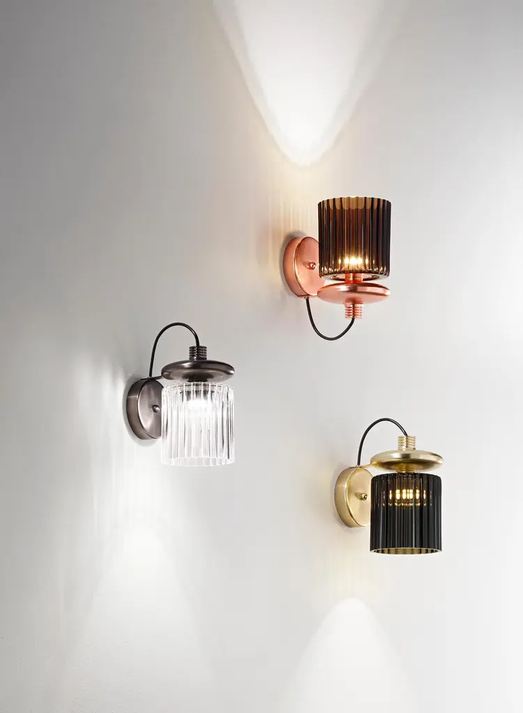 The “technicity” of the metal element combined with the blown glass diffuser gives Tread an “industrial” style. An object reminiscent of vintage electrical equipment for its particular shape, in which the finned heat sink, combined with blown glass, becomes a distinctive element. Tread creates an avant-garde and stylish atmosphere by combining crystal, smoky, burned earth and transparent old green glass with copper, gold and bronze matt finishes.Specifications:Material: GlassLight source: LED L2213 ULNo of bulbs: 1x8W LED L2213 UL (100-120 v 50/60HZ)Lumens: 1500 lmKelvin: 2700 KDimmer: DIM 2Year: 2019Glass finish: Crystal TransparentFrame finish: Matt Copper 1Dimensions: Ø 20 x 23 H cmAvailable in other glass finish options: Smoky Transparent, Burned Earth Transparent, Old Green TransparentAvailable in other frame finish options: Matt Bronze 3, Matt Gold 3Available in other light source options: LED L2313 UL - $ 916, LED L3213 UL - $ 916, LED L3313 UL - $ 916Available in other lumens option: 1600 lm for LED L3213 UL, LED L3313 ULAvailable in other kelvin option: 3000 K for LED L3213 UL, LED L3313 ULAvailable in other dimmer option: DIM 3 for LED L2313 UL, LED L3313 ULPlease inquire about customization options.