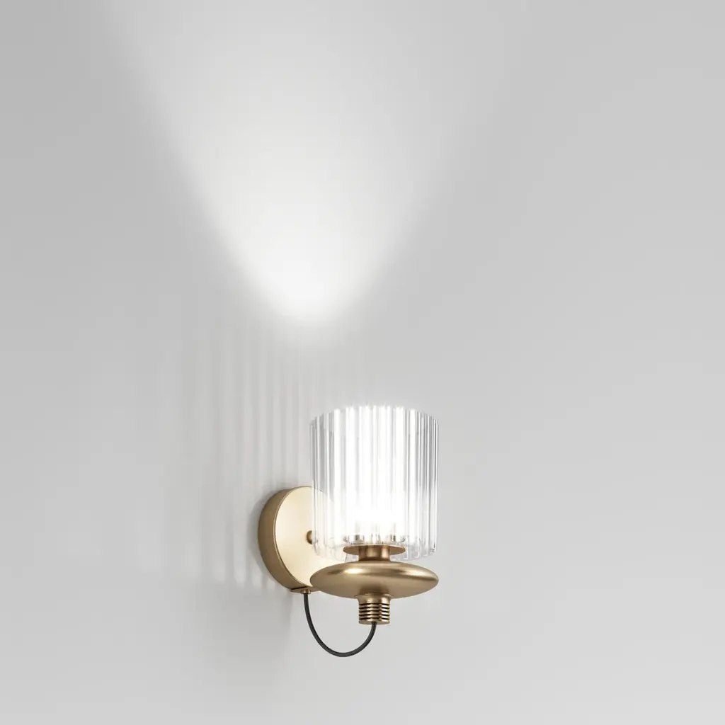 Vistosi Tread Wall Sconce In Crystal Transparent Glass And Matt Gold Frame