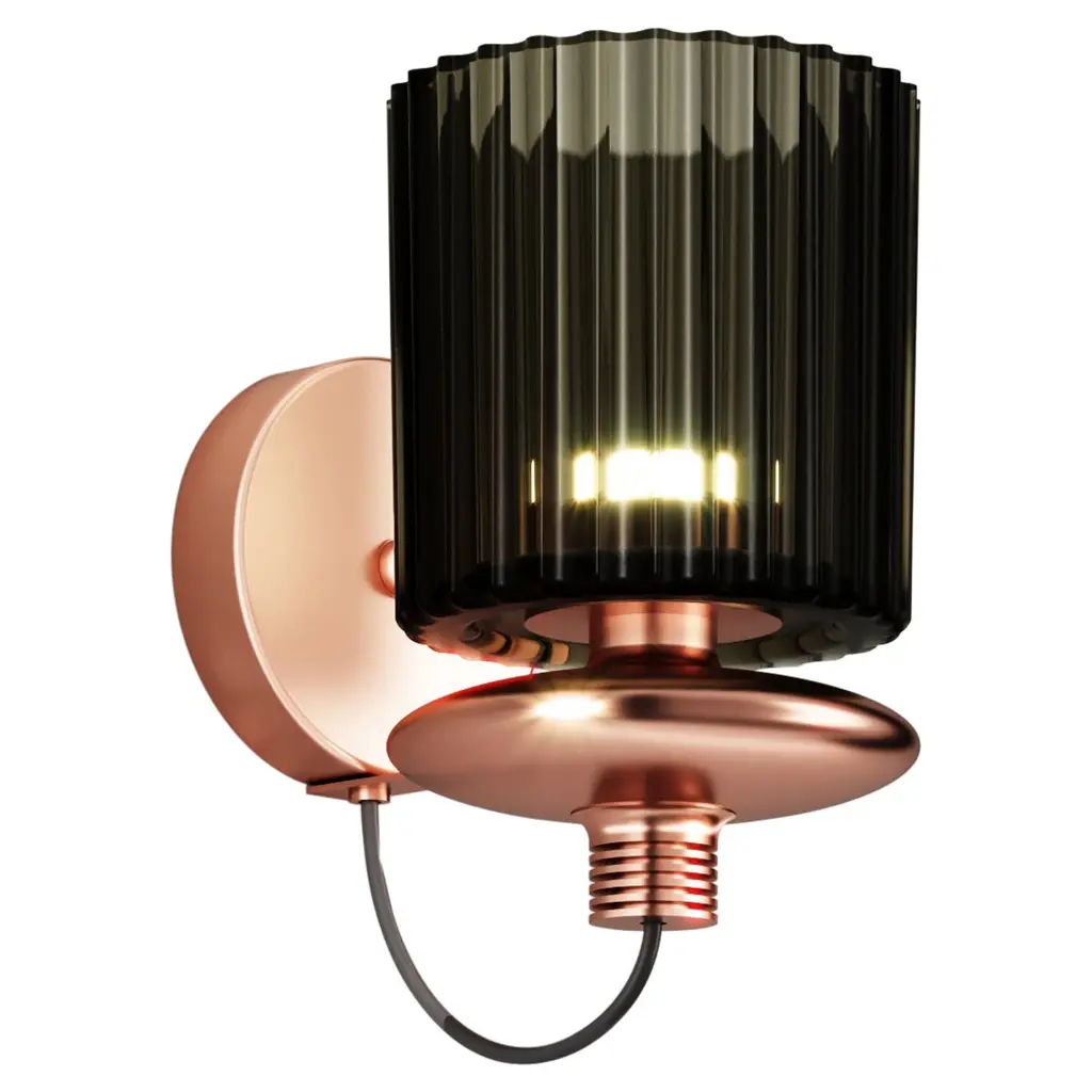 Vistosi Tread Wall Sconce In Smoky Transparent Glass And Matt Copper Frame