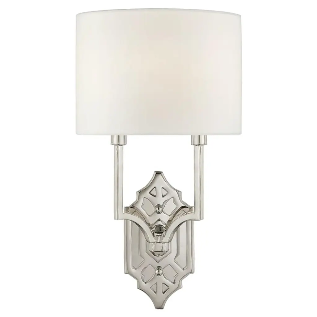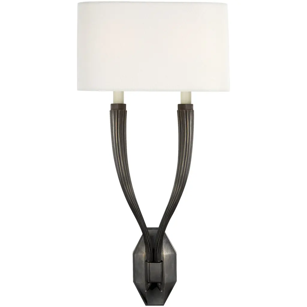 Visual Comfort Silhouette Fretwork Regency Bronze Metal Linen Shade Sconce
