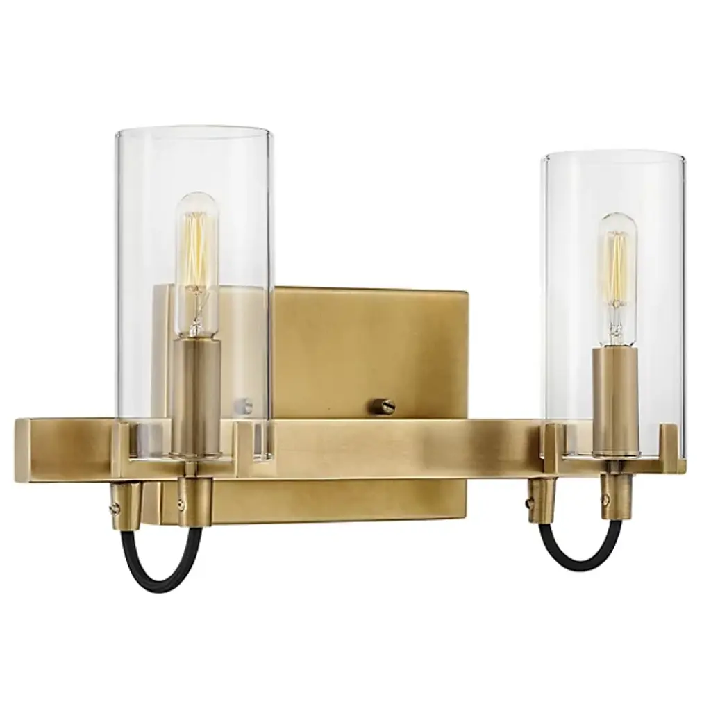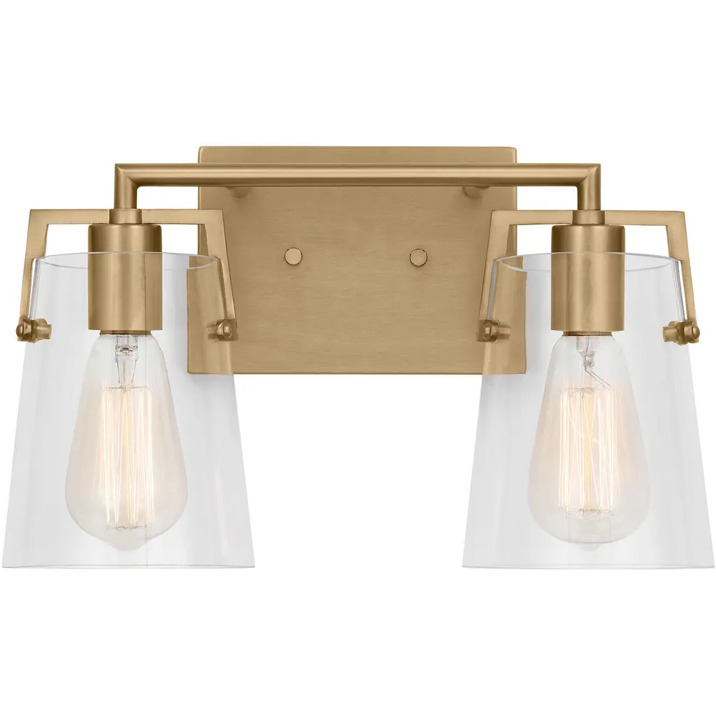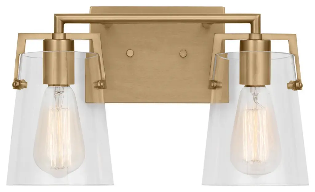 The Fullton two light vanity fixture in Satin Brass is sleek, contemporary, and uber minimalistic. Visual interest is created using a mix of rectangular and round frames, a subtle design detail. Although this collection is contemporary, it can be mixed in with variety of collections with ease.Width: 14.25"Height: 7.75"Weight: 2.13 lbBulbs: 2 x 3.50W B10 Torpedo Candelabra 350.00lm 2700K, Included