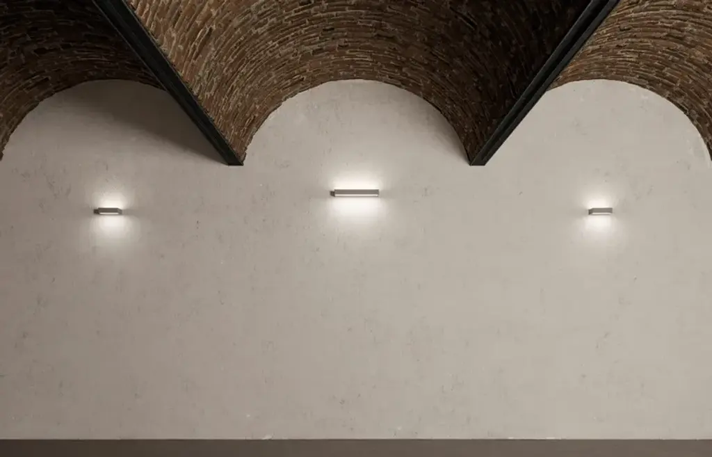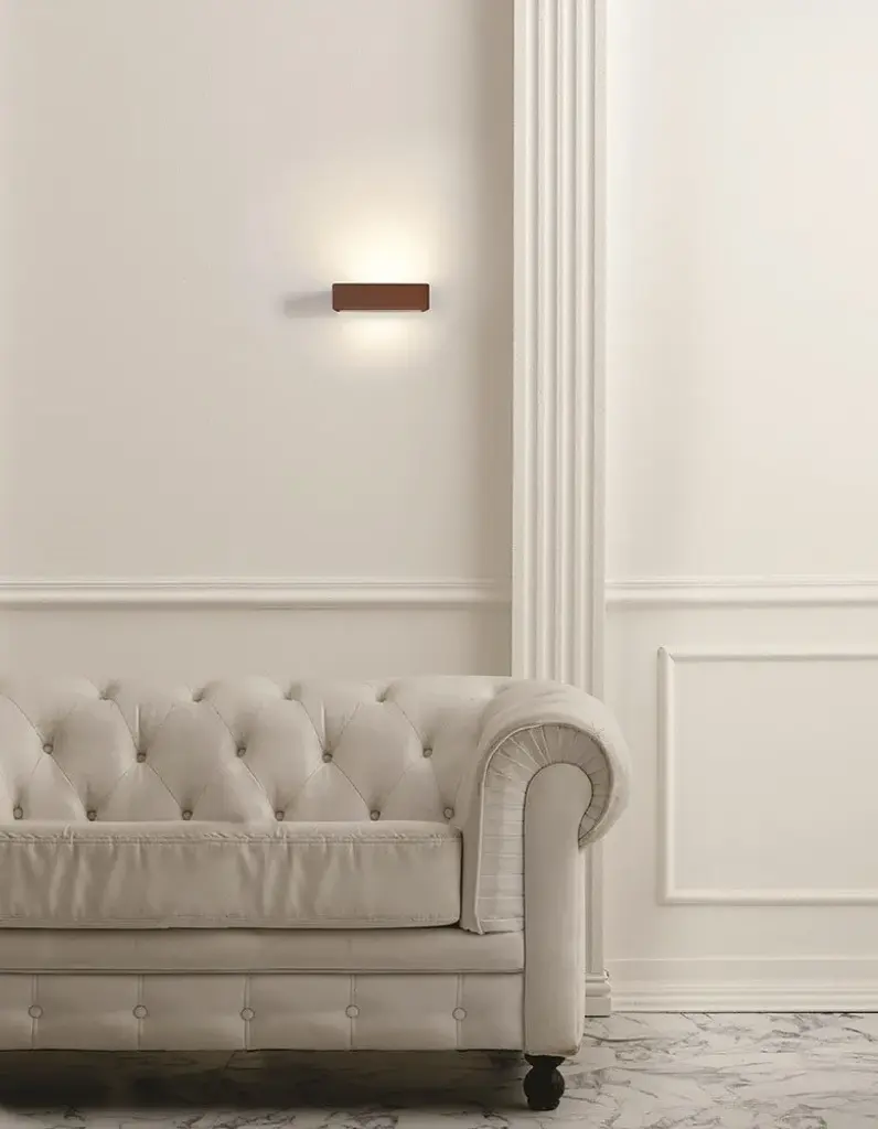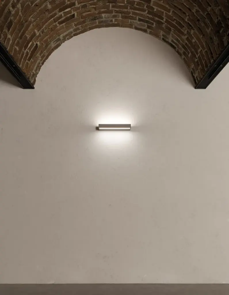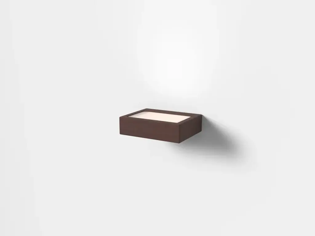 Wall lamp. Steel sheet folded and coated with epoxy powders. Integrated LED module with opal methacrylate diffusers on the upper and lower side of the body. Issues direct and indirect light. Finishes:C36 CortenC80 Sand whiteVIVA 199/41LED included, 1 x 8W - LED 600 Lm 2700K VIVA 199/43LED included, 1 x 13W - LED 1450 Lm 2700K VIVA 199/45LED included, 2 x 13W - LED 2900 Lm 2700K