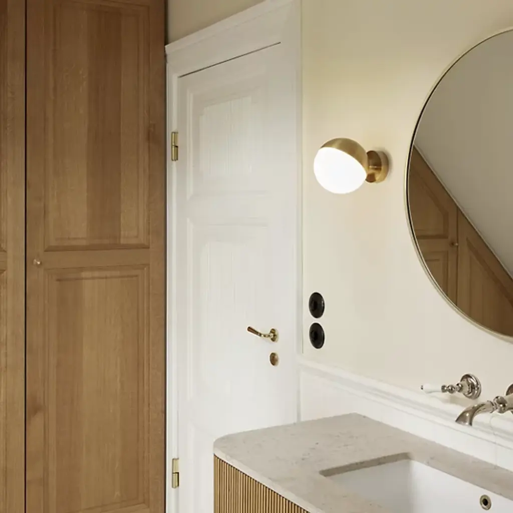 Pairing contemporary cleverness with a touch of smooth, modern refinement proves that the VL Studio Wall Sconce from Louis Poulsen has it all. A Denmark-made design by Vilhelm Lauritzen, VL starts with a circular wall plate, extending a short, cylindrical collar to a round dome shade enclosing powerful LED lamping. A diffuser dome of hand-blown opal glass with three layers transforms direct light into a pleasing, even glow sweeping out across the fixture’s surroundings. This fixture shares a family with pieces designed for Radiohuset, the headquarters of the Danish Broadcasting Corporation in the 1940s.