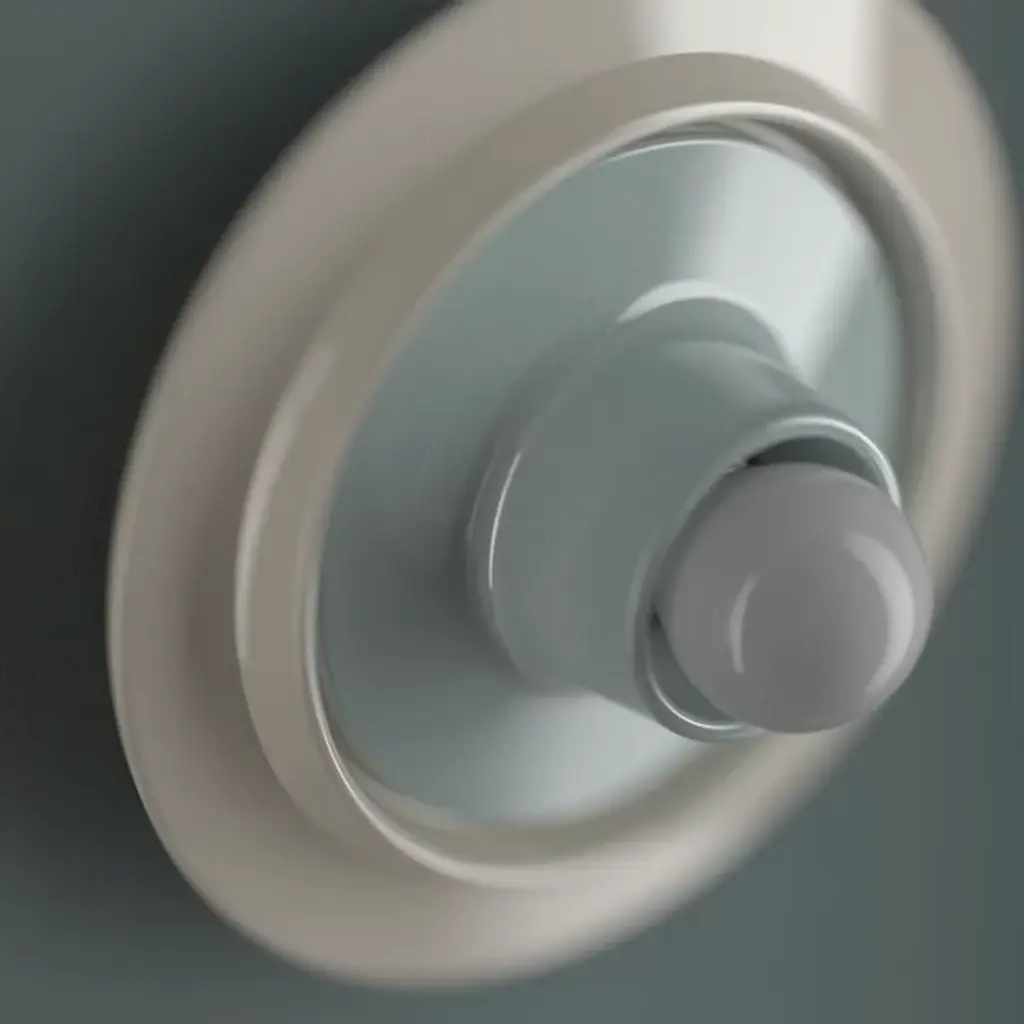 Layered, vibrant, and colorful, the Voila Wall Sconce from Ferroluce showcases a bold disc with precisely colored ring accents, evoking its name, which pays homage to the triumphant ceramicist raising the finished piece from its mold. The Italian-made ceramic construction pairs bespoke fabrication with mechanical precision, relying on a pressing technique that joins two separately-colored concentric circles. The slender fixture is also ADA compliant, placing central lamping close to the wall while allowing the sleek, contrasting ceramic finishes to speak for themselves.