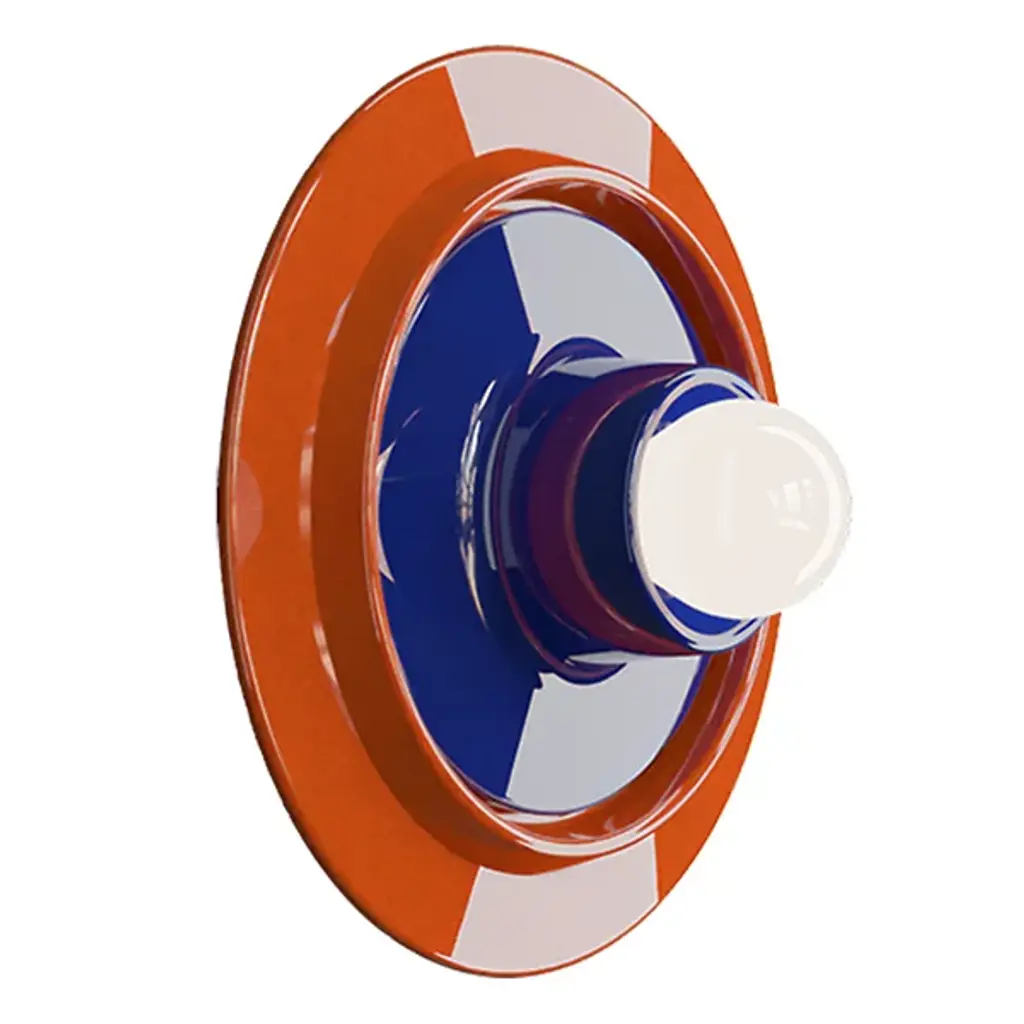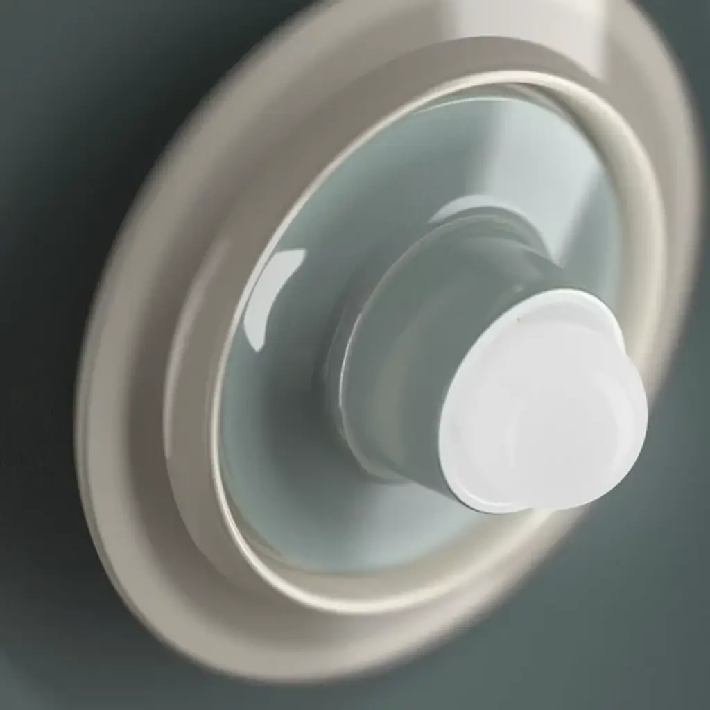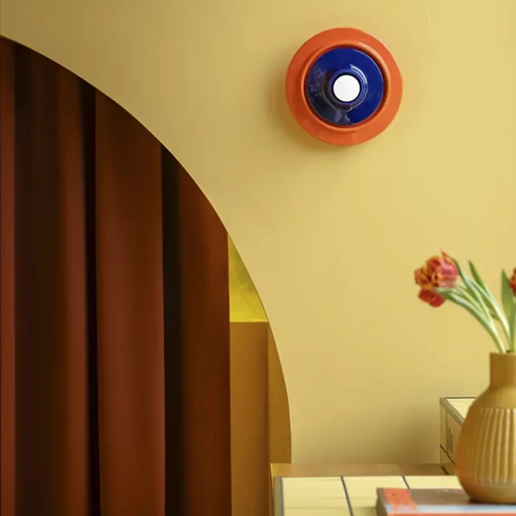 Layered, vibrant, and colorful, the Voila Wall Sconce from Ferroluce showcases a bold disc with precisely colored ring accents, evoking its name, which pays homage to the triumphant ceramicist raising the finished piece from its mold. The Italian-made ceramic construction pairs bespoke fabrication with mechanical precision, relying on a pressing technique that joins two separately-colored concentric circles. The slender fixture is also ADA compliant, placing central lamping close to the wall while allowing the sleek, contrasting ceramic finishes to speak for themselves.