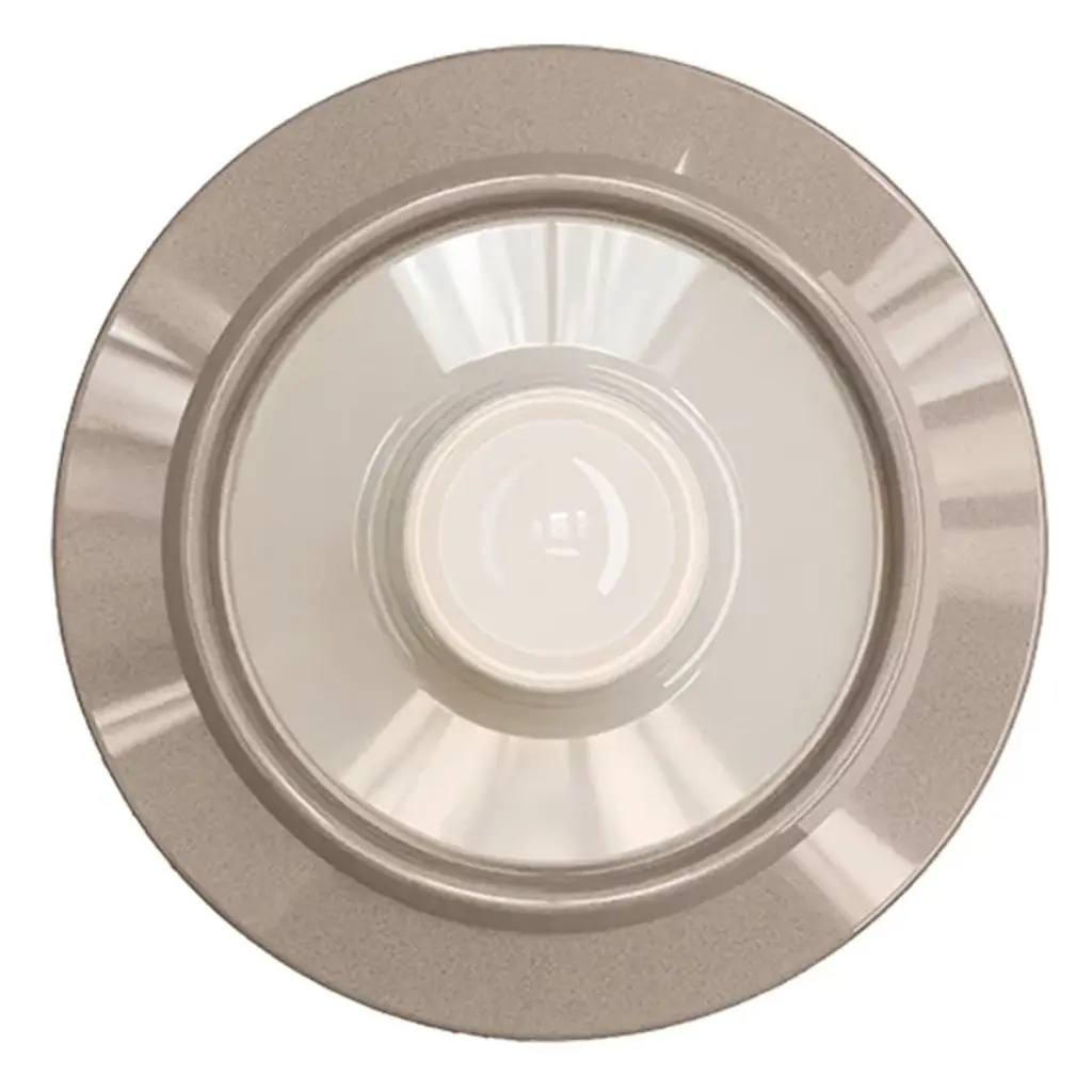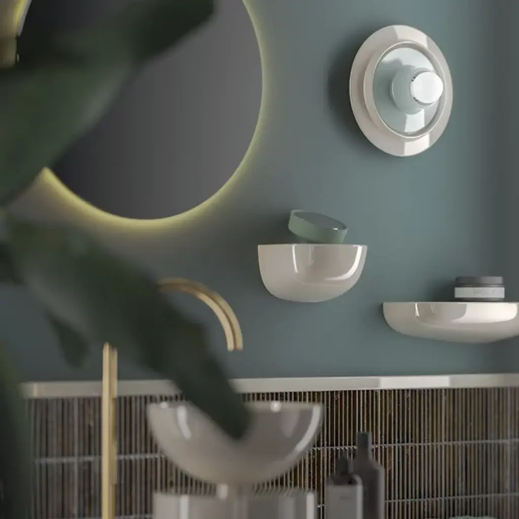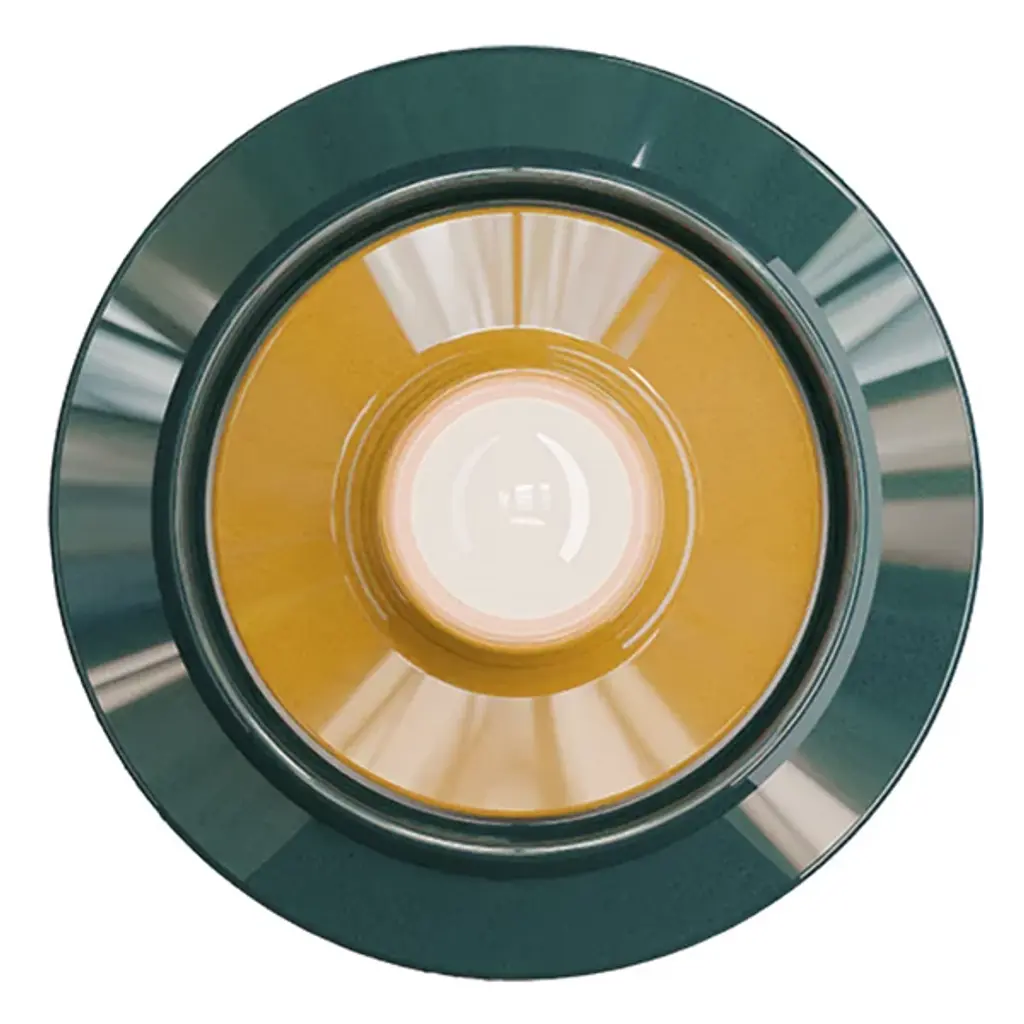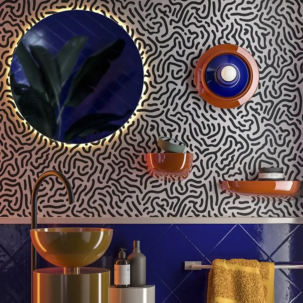 Layered, vibrant, and colorful, the Voila Wall Sconce from Ferroluce showcases a bold disc with precisely colored ring accents, evoking its name, which pays homage to the triumphant ceramicist raising the finished piece from its mold. The Italian-made ceramic construction pairs bespoke fabrication with mechanical precision, relying on a pressing technique that joins two separately-colored concentric circles. The slender fixture is also ADA compliant, placing central lamping close to the wall while allowing the sleek, contrasting ceramic finishes to speak for themselves.