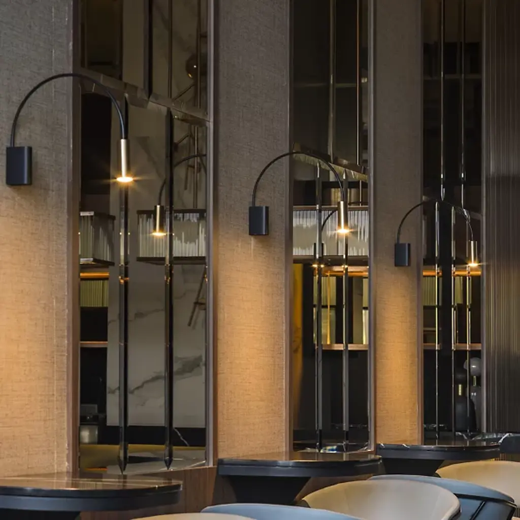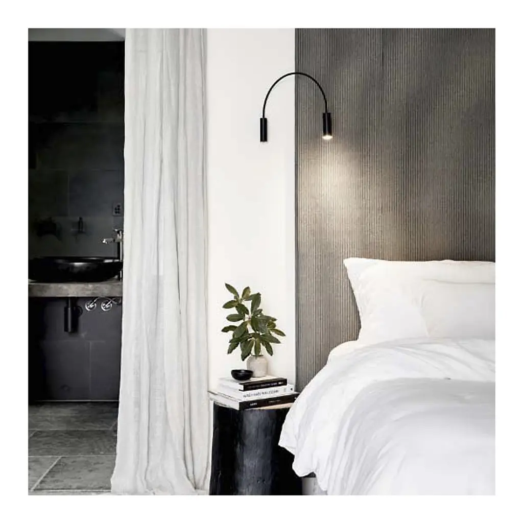 The Estiluz Volta Wall Sconce takes its cue from the reach of an arc lamp, only places it on the wall. The thin structure looks like wire, when in fact it is made from Aluminum. The curved stem places the light directly below for task-oriented spaces, and for added convenience, can be adjusted left to right 180 degrees.