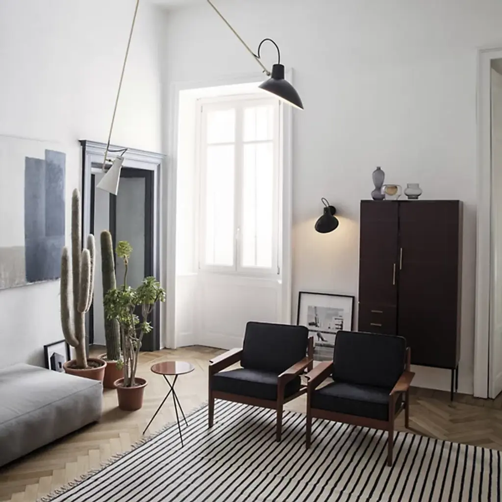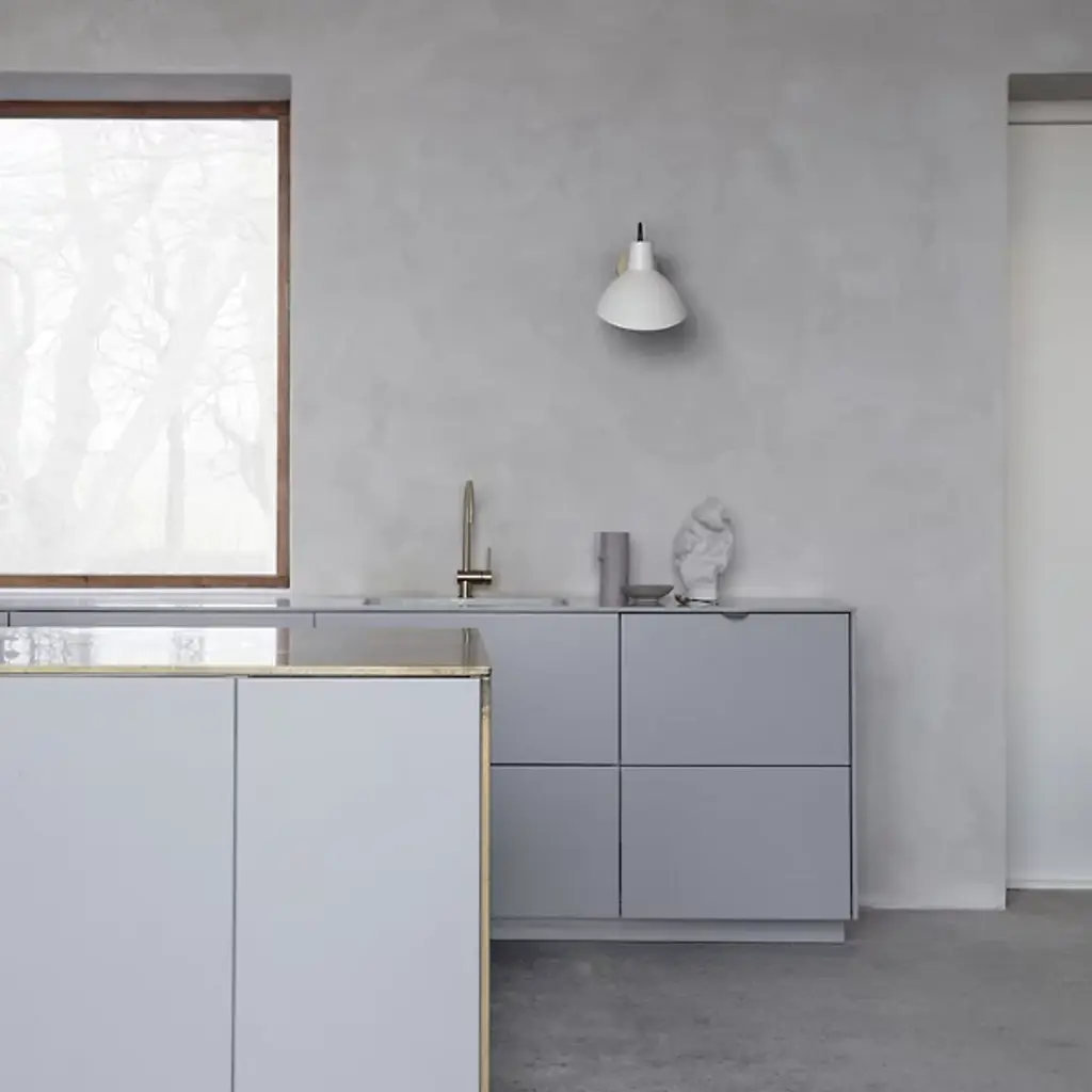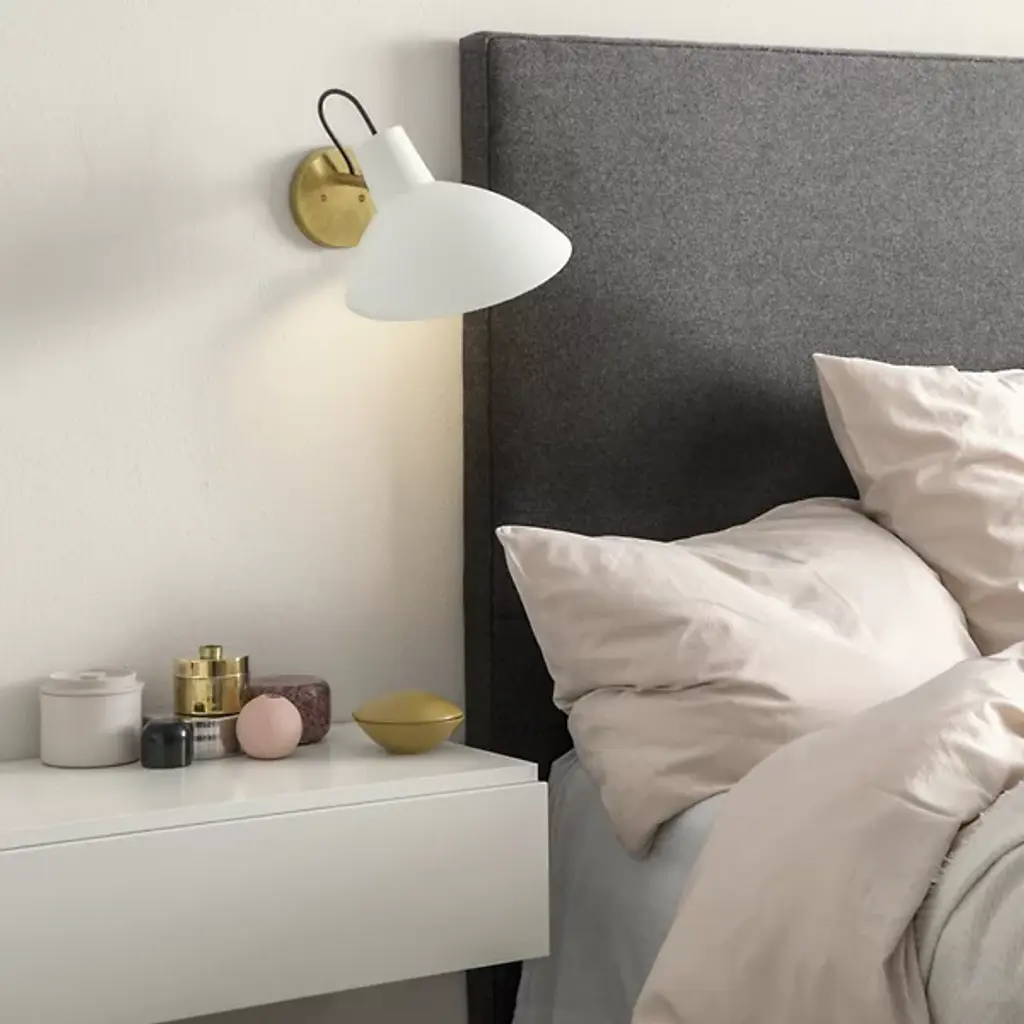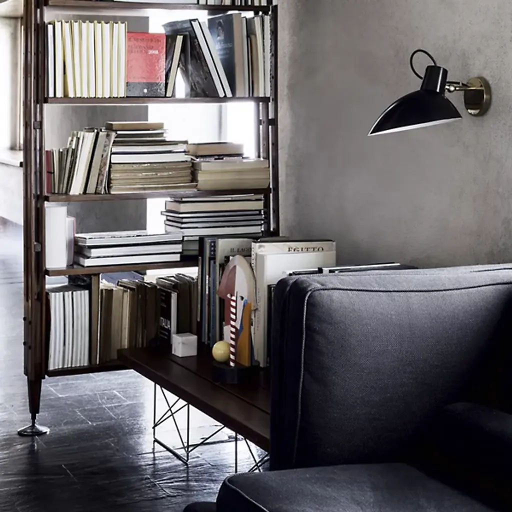 Give a bold retro presence to indoor walls with the VV Cinquanta Wall Sconce from Astep. A daring, retro design by Vittorano Vigano, it extends from a circular brass wall mount, extending a short crossbar to posable lamping beneath a curving, scoop-style shade of spun aluminum, keeping things simple and refined. The shade’s curved shape reduces glare to the sides, transforming direct light to a mix of reflected radiance and posable task light, making it an inspired companion for bedside, hallway spaces, and more.