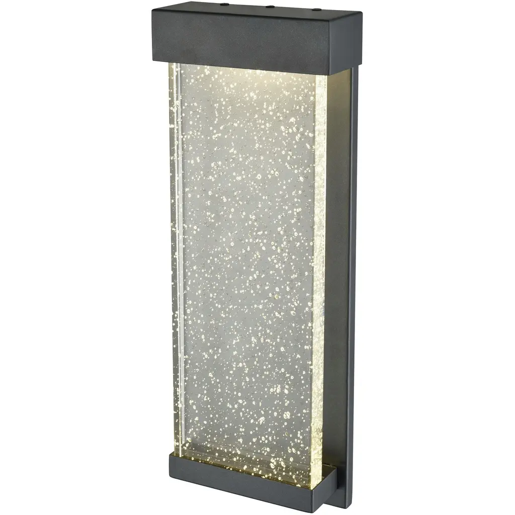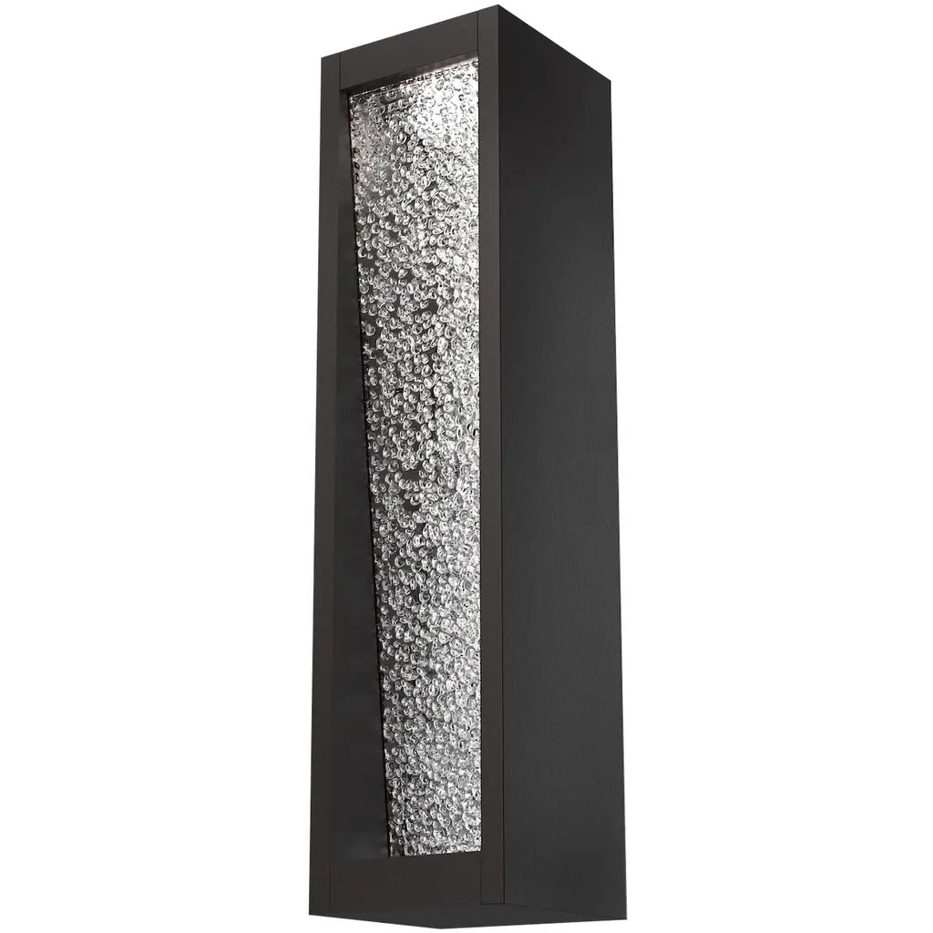 Linear and eye-catching, this contemporary wall sconce adds dimensional appeal to your lighting. A panel of LED lights illuminates the solid crystal bubbled glass block from within, creating a sparkling effect. Polished nickel finish fittings complete this design. From the Mythical Collection by WAC Lighting.