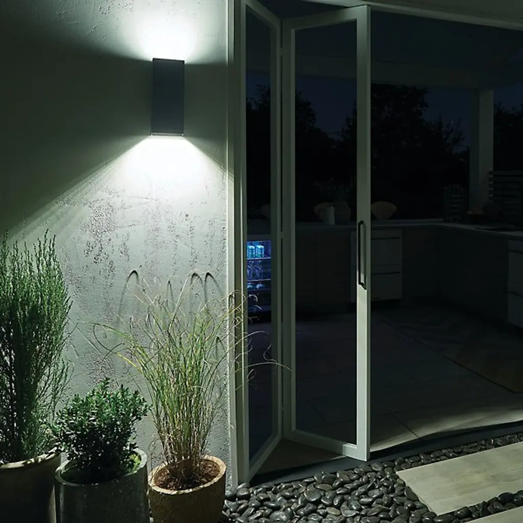 The Walden LED Outdoor Wall Sconce by Kichler has a clean, no-nonsense style with its rectangular body and integrated LED light sources. Its open design helps channel light downward (and upward with the 2-light option) through an etched glass lens, enhancing the light output while eliminating glare and hotspots. Ideal for outdoor walls and entryways of a modern home or business. Available in different finishes to match your taste.