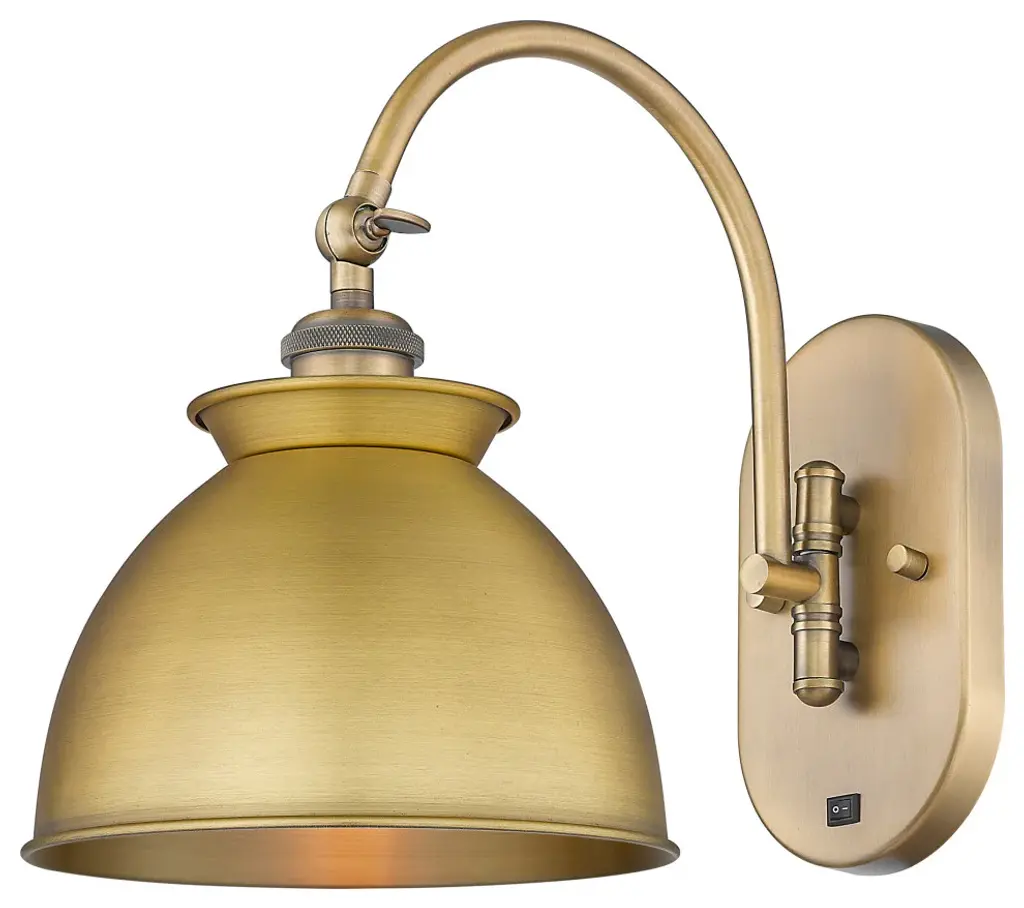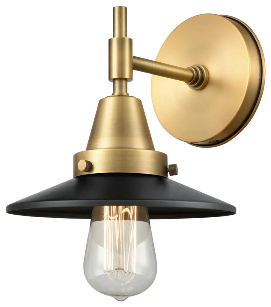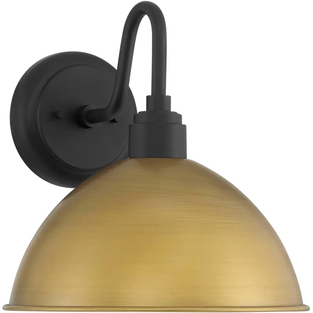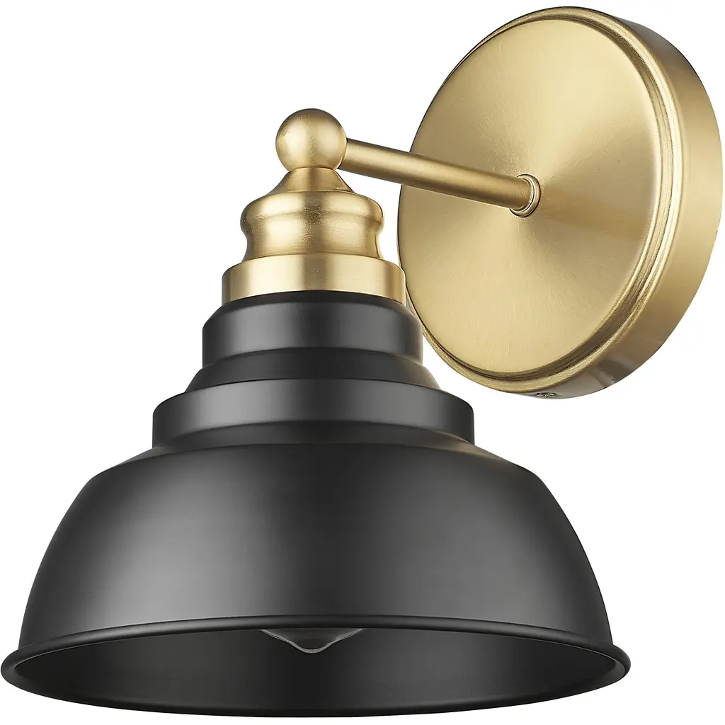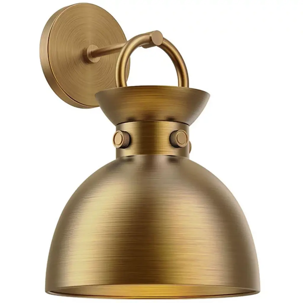 The Waldo Wall Sconce from Alora Mood adds a touch of visual complexity to one’s interior spaces with elegance in mind. Compact mounting hardware gives this sconce a place on a column, near an entryway, or in a nook. It grabs the eyes with a ring finial and a series of protruding rods. The hanging lampshade flows downward with a series of delightful curves. A single bulb extends its ambient light down, glazing the nearby wall