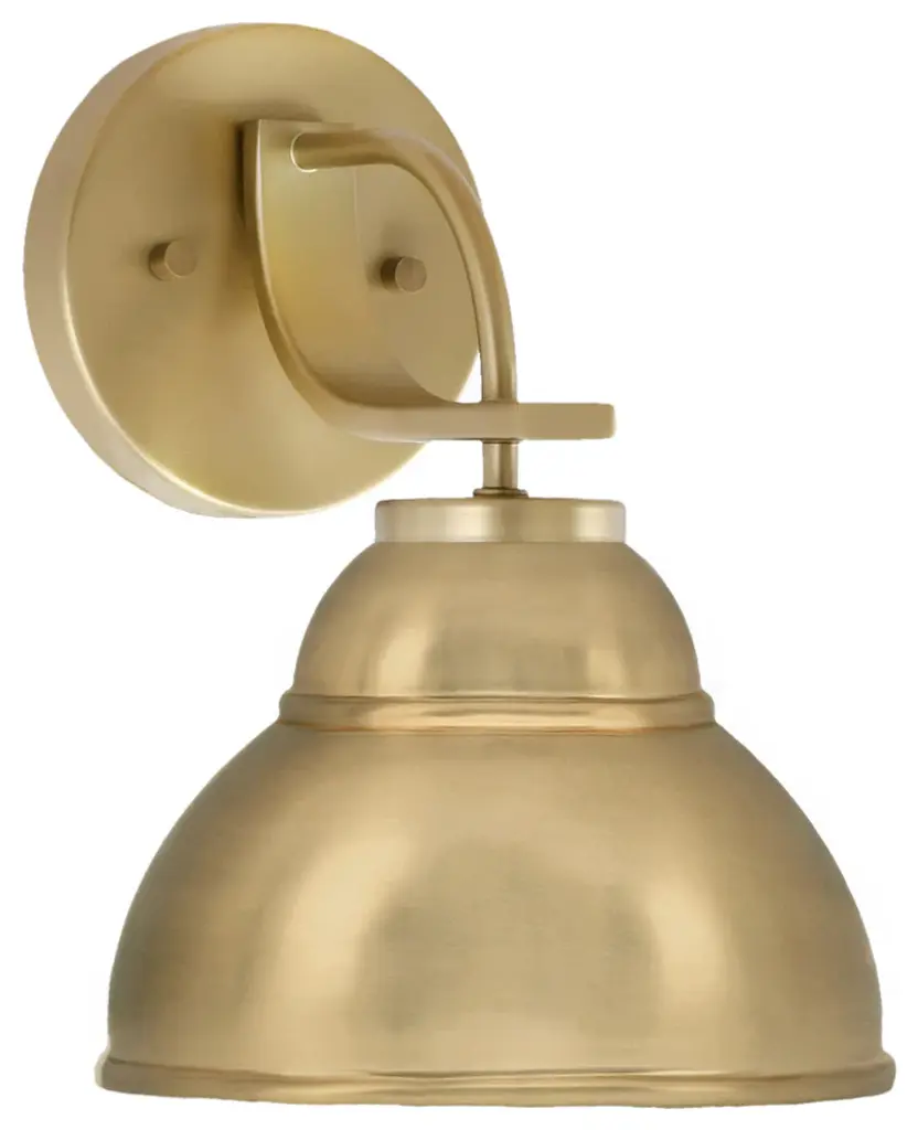 The Waldo Wall Sconce from Alora Mood adds a touch of visual complexity to one’s interior spaces with elegance in mind. Compact mounting hardware gives this sconce a place on a column, near an entryway, or in a nook. It grabs the eyes with a ring finial and a series of protruding rods. The hanging lampshade flows downward with a series of delightful curves. A single bulb extends its ambient light down, glazing the nearby wall