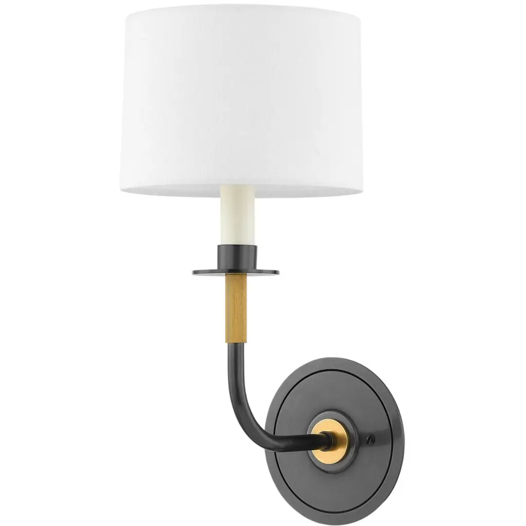 Simply elegant, this sconce from kate spade new york is crafted of brass with a circular backplate and burnished silver finish. A neutral linen shade completes the design. Hardwired.
