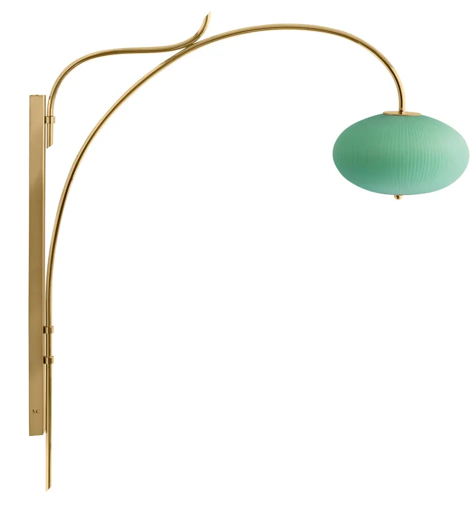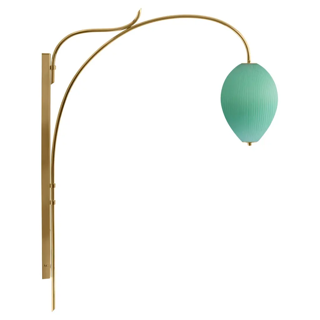Wall lamp China 07 by Magic Circus Editions.Dimensions: H 120 x W 32 x D 113.5 cm.Materials: brass, mouth blown glass sculpted with a diamond saw.Colour: jade green.Available finishes: brass, nickel.Available colours: enamel soft white, soft rose, jade green, mustard yellow, rich grey, opal grey; For the tubes: black, red brick.All our lamps can be wired according to each country. If sold to the USA it will be wired for the USA for instance.Rethinking, reimagining, redesigning familiar objects that we look at every day without ever really seeing them and using light to tell stories, this how Marie-Lise Féry sees her work. Offering a new take on our urban heritage, changing our perspective through her work on scale and usage. Since 2015, Magic Circus Éditions has been setting the world of lighting ablaze, creating airy, playful and magical designs that merge retro with sleek and contemporary. A free-spirited antiquarian, founder Marie-Lise Féry draws inspiration from the world of cabarets and the magic of the circus to give shape to imaginative, fun and playful collections. The air of magic she breathes into her work reveals a wealth of interpretations and widens possibilities for creative interiors. The combination of traditional know-how — outstanding craftsmanship — and her imaginative take on historical, everyday objects lends an unexpected and charming quality to her creations.Féry’s lights are designed just like magic lanterns — precursor to modern-day cinema —, inspiring wonder through oversized, seemingly weightless compositions and understated references. Each collection has its own inspiration: the first models of street lighting for Collection 01; the happy memories of funfairs, sweets and balloons for her latest collection Balloon; the Far East for Collection 02; and the colourful, carefree spirit of the 1970s for Pop-Up, released in 2019. Magic Circus Éditions draws on airy designs, dream-like inspirations, colours and fun to create a sense of enchantment.Magic Circus Éditions founder Marie-Lise Féry was born in Paris. After studyingart business, she moved to New York to start her career. Fascinated by the city’s architecture, she found an endless source of inspiration in the Big Apple’s monumental decors. Returning to France to settle down in Lyon, she opened an antiques gallery named Un Château en Espagne, and started telling her own stories through objects she gleaned on markets all around the country. A way for her to perpetuate her mother’s motto: “Objects with a soul will always belong”. Since 2015, the year she established Magic Circus Éditions, she has moved on to lighting as a new medium for telling her stories, bringing the magic of the show into home interiors. With her love for the circus, turn-of-the-century cabarets and music halls, Marie-Lise Féry’s love of unusual objects has remained strong, but now prefers to focus her attention on pieces she has imagined herself. With a fun and light-spirited approach, she creates a bold visual effect that elicits instant attraction. She collaborates with some of Europe’s greatest artisans, from Prague and Murano to Clermont-Ferrand, working for instance with a Czech company specialising in sculpting glass using a diamond-blade saw, or an auto body shop renowned for their work with lacquers. The refinement of shapes and finishes, bespoke designs and technical excellence all contribute to creating pieces that inspire surprise and wonderment. In the manner of Wes Anderson in Grand Budapest Hotel, blending together elegance, humour and unexpected details, her designs never fail to surprise. Attentive to the effect of her designs both in daylight and at night, Marie-Lise Féry takes us on a journey through space (from outside to inside) and time (from yesterday to today).