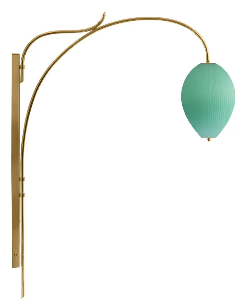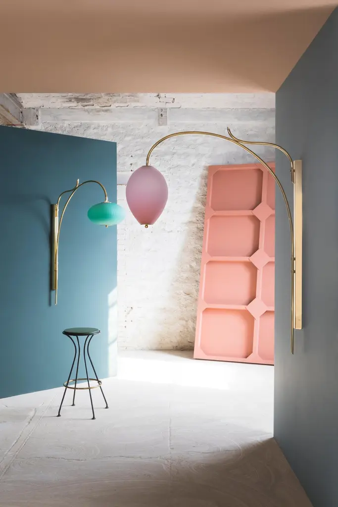 Wall lamp China 10 by Magic Circus Editions.Dimensions: H 134 x W 25.2 x D 113.5 cm.Materials: brass, mouth blown glass sculpted with a diamond saw.Colour: opal grey.Available finishes: brass, nickel.Available colours: enamel soft white, soft rose, jade green, mustard yellow, rich grey, opal greyAll our lamps can be wired according to each country. If sold to the USA it will be wired for the USA for instance.Rethinking, reimagining, redesigning familiar objects that we look at every day without ever really seeing them and using light to tell stories, this how Marie-Lise Féry sees her work. Offering a new take on our urban heritage, changing our perspective through her work on scale and usage. Since 2015, Magic Circus Éditions has been setting the world of lighting ablaze, creating airy, playful and magical designs that merge retro with sleek and contemporary. A free-spirited antiquarian, founder Marie-Lise Féry draws inspiration from the world of cabarets and the magic of the circus to give shape to imaginative, fun and playful collections. The air of magic she breathes into her work reveals a wealth of interpretations and widens possibilities for creative interiors. The combination of traditional know-how — outstanding craftsmanship — and her imaginative take on historical, everyday objects lends an unexpected and charming quality to her creations.Féry’s lights are designed just like magic lanterns — precursor to modern-day cinema —, inspiring wonder through oversized, seemingly weightless compositions and understated references. Each collection has its own inspiration: the first models of street lighting for Collection 01; the happy memories of funfairs, sweets and balloons for her latest collection Balloon; the Far East for Collection 02; and the colourful, carefree spirit of the 1970s for Pop-Up, released in 2019. Magic Circus Éditions draws on airy designs, dream-like inspirations, colours and fun to create a sense of enchantment.Magic Circus Éditions founder Marie-Lise Féry was born in Paris. After studyingart business, she moved to New York to start her career. Fascinated by the city’s architecture, she found an endless source of inspiration in the Big Apple’s monumental decors. Returning to France to settle down in Lyon, she opened an antiques gallery named Un Château en Espagne, and started telling her own stories through objects she gleaned on markets all around the country. A way for her to perpetuate her mother’s motto: “Objects with a soul will always belong”. Since 2015, the year she established Magic Circus Éditions, she has moved on to lighting as a new medium for telling her stories, bringing the magic of the show into home interiors. With her love for the circus, turn-of-the-century cabarets and music halls, Marie-Lise Féry’s love of unusual objects has remained strong, but now prefers to focus her attention on pieces she has imagined herself. With a fun and light-spirited approach, she creates a bold visual effect that elicits instant attraction. She collaborates with some of Europe’s greatest artisans, from Prague and Murano to Clermont-Ferrand, working for instance with a Czech company specialising in sculpting glass using a diamond-blade saw, or an auto body shop renowned for their work with lacquers. The refinement of shapes and finishes, bespoke designs and technical excellence all contribute to creating pieces that inspire surprise and wonderment. In the manner of Wes Anderson in Grand Budapest Hotel, blending together elegance, humour and unexpected details, her designs never fail to surprise. Attentive to the effect of her designs both in daylight and at night, Marie-Lise Féry takes us on a journey through space (from outside to inside) and time (from yesterday to today).