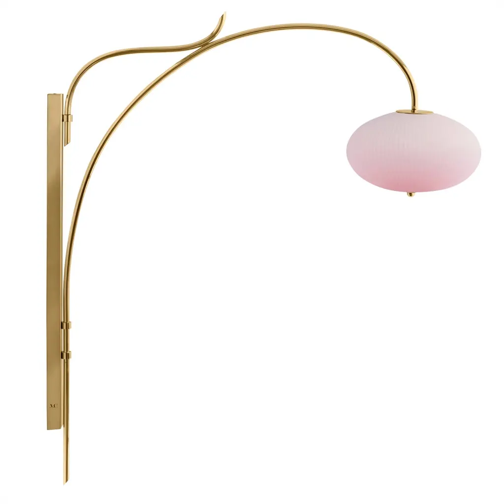 Wall lamp China 10 by Magic Circus EditionsDimensions: H 134 x W 25.2 x D 113.5 cmMaterials: Brass, mouth blown glass sculpted with a diamond sawColour: enamel soft whiteAvailable finishes: Brass, nickelAvailable colours: enamel soft white, soft rose, jade green, mustard yellow, rich grey, opal greyAll our lamps can be wired according to each country. If sold to the USA it will be wired for the USA for instance.Rethinking, reimagining, redesigning familiar objects that we look at every day without ever really seeing them and using light to tell stories, this how Marie-Lise Féry sees her work. Offering a new take on our urban heritage, changing our perspective through her work on scale and usage. Since 2015, Magic Circus Éditions has been setting the world of lighting ablaze, creating airy, playful and magical designs that merge retro with sleek and contemporary. A free-spirited antiquarian, founder Marie-Lise Féry draws inspiration from the world of cabarets and the magic of the circus to give shape to imaginative, fun and playful collections. The air of magic she breathes into her work reveals a wealth of interpretations and widens possibilities for creative interiors. The combination of traditional know-how — outstanding craftsmanship — and her imaginative take on historical, everyday objects lends an unexpected and charming quality to her creations.Féry’s lights are designed just like magic lanterns — precursor to modern-day cinema —, inspiring wonder through oversized, seemingly weightless compositions and understated references. Each collection has its own inspiration: the first models of street lighting for Collection 01; the happy memories of funfairs, sweets and balloons for her latest collection Balloon; the Far East for Collection 02; and the colourful, carefree spirit of the 1970s for Pop-Up, released in 2019. Magic Circus Éditions draws on airy designs, dream-like inspirations, colours and fun to create a sense of enchantment.Magic Circus Éditions founder Marie-Lise Féry was born in Paris. After studyingart business, she moved to New York to start her career. Fascinated by the city’s architecture, she found an endless source of inspiration in the Big Apple’s monumental decors. Returning to France to settle down in Lyon, she opened an antiques gallery named Un Château en Espagne, and started telling her own stories through objects she gleaned on markets all around the country. A way for her to perpetuate her mother’s motto: “Objects with a soul will always belong”. Since 2015, the year she established Magic Circus Éditions, she has moved on to lighting as a new medium for telling her stories, bringing the magic of the show into home interiors. With her love for the circus, turn-of-the-century cabarets and music halls, Marie-Lise Féry’s love of unusual objects has remained strong, but now prefers to focus her attention on pieces she has imagined herself. With a fun and light-spirited approach, she creates a bold visual effect that elicits instant attraction. She collaborates with some of Europe’s greatest artisans, from Prague and Murano to Clermont-Ferrand, working for instance with a Czech company specialising in sculpting glass using a diamond-blade saw, or an auto body shop renowned for their work with lacquers. The refinement of shapes and finishes, bespoke designs and technical excellence all contribute to creating pieces that inspire surprise and wonderment. In the manner of Wes Anderson in Grand Budapest Hotel, blending together elegance, humour and unexpected details, her designs never fail to surprise. Attentive to the effect of her designs both in daylight and at night, Marie-Lise Féry takes us on a journey through space (from outside to inside) and time (from yesterday to today).