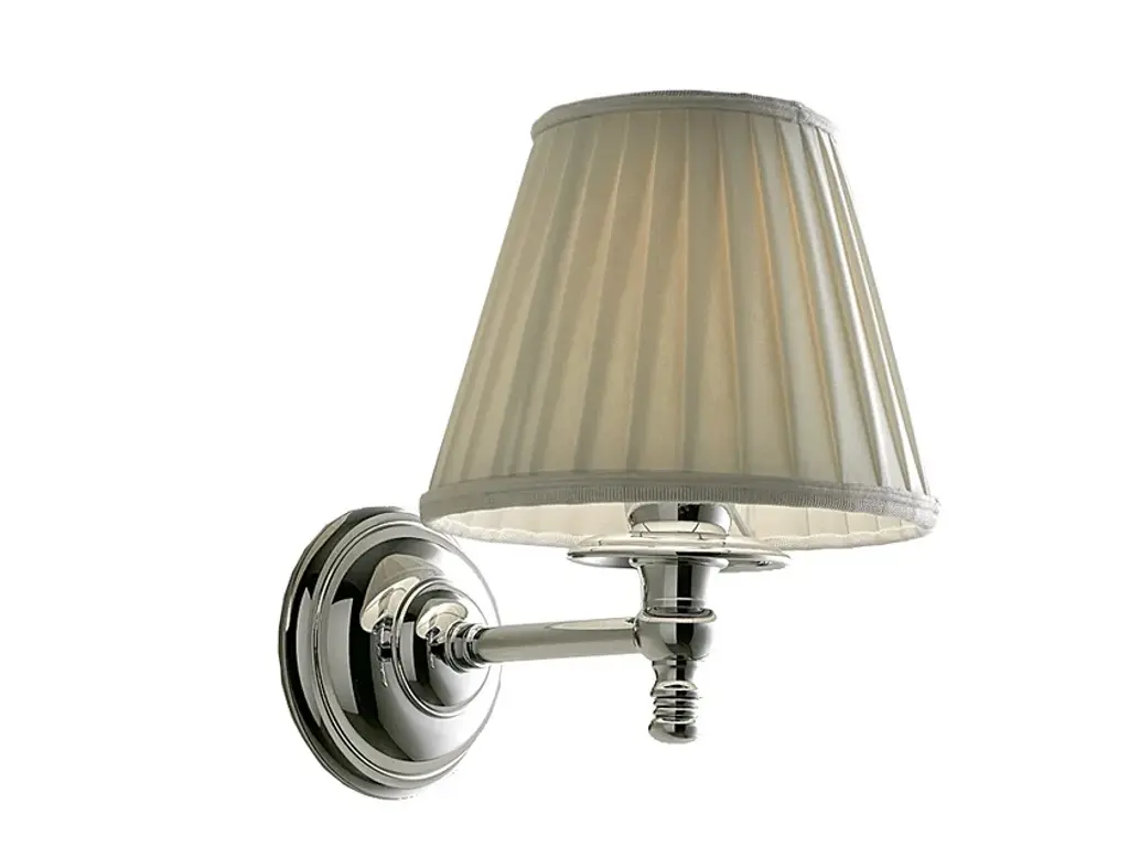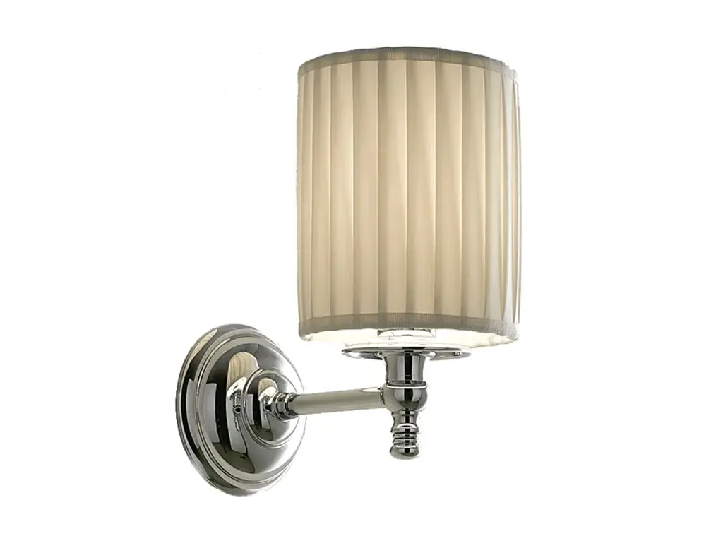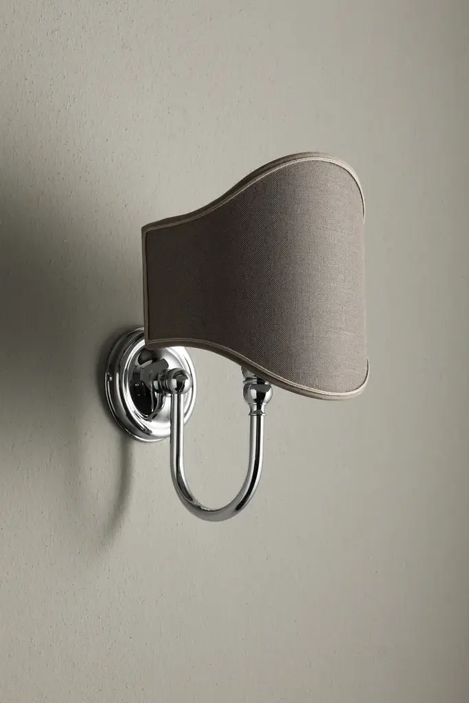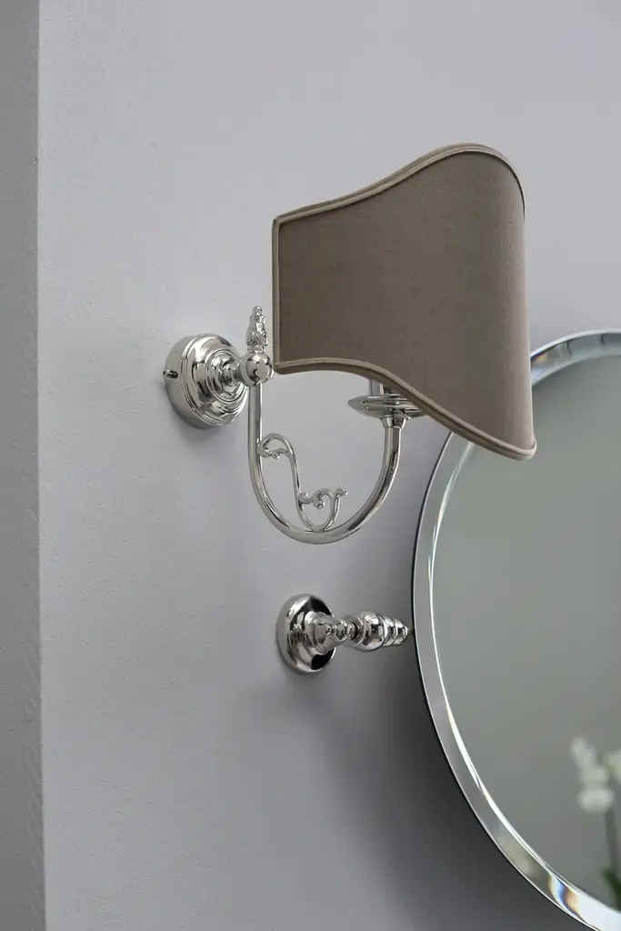 The retro style Bleu Provence wall lamps for bathrooms are made in brass of the highest quality. Large choice of metal finishing (chrome, nickel, copper, gold, bronze,…) matt or glossy. Numerous colors for lampshades available (white, beige, brown, black, red, gray,…).
