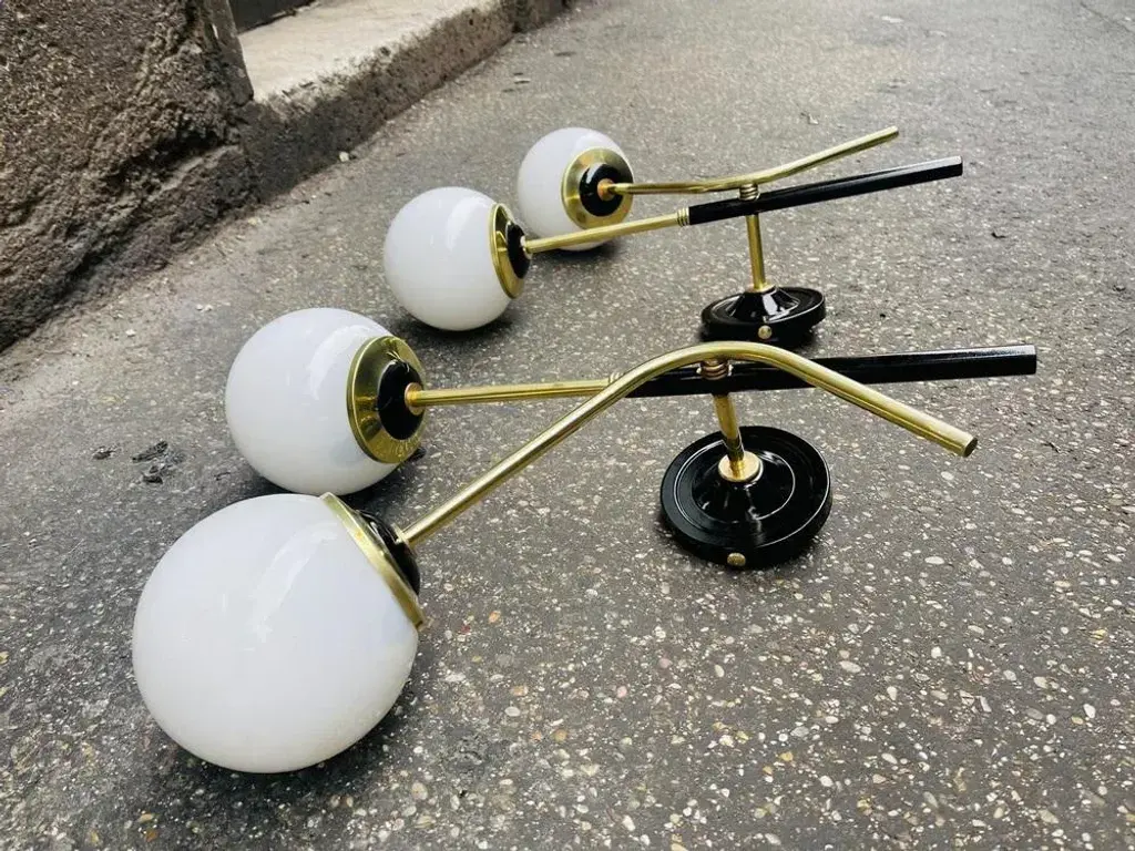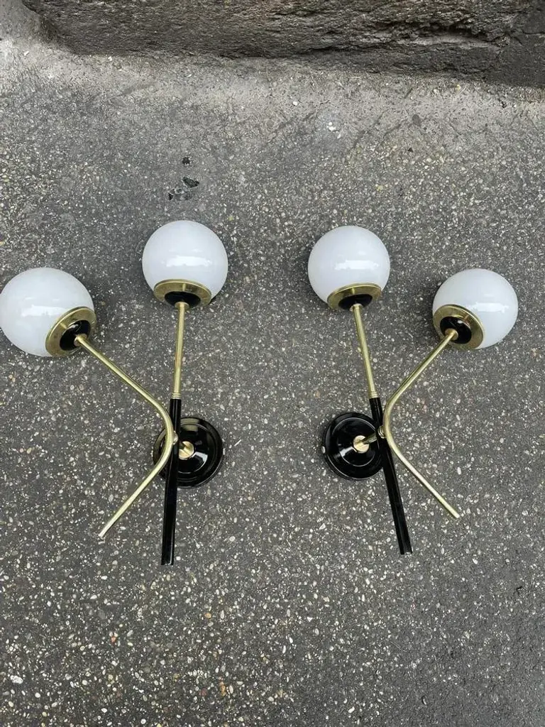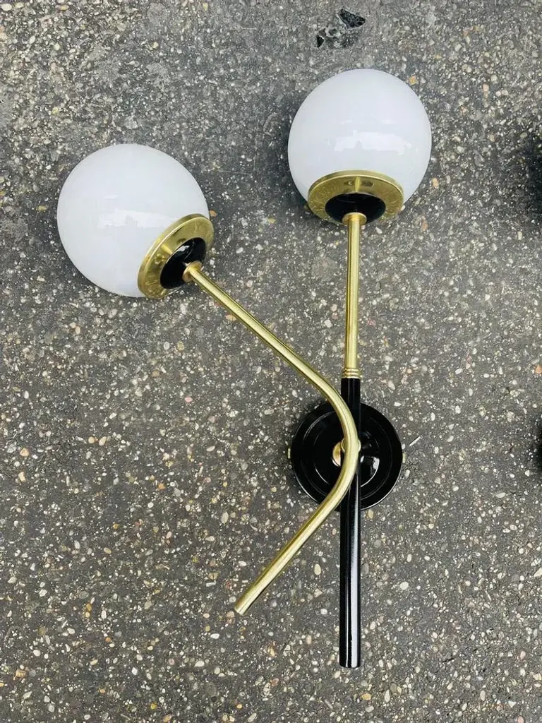 Very rare applique Stilnovo, published, in perfect condition, completely restored, all in brass with white opal I have official proof of authenticity such as vintage catalogs, designer records, or other literature sources and take full responsibility for any authenticity issues arising from misattribution, European Plug (up to 250V).The wiring of this item may be original and might need replacement, if not specified otherwise.