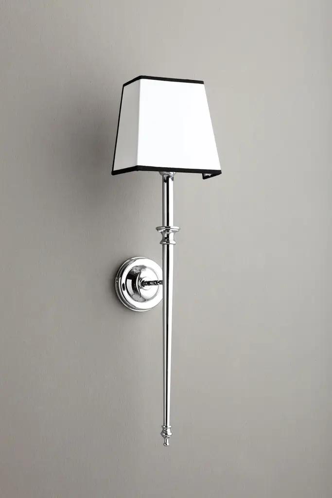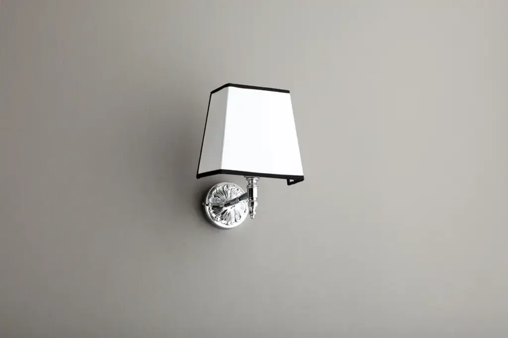 The retro style Bleu Provence wall lamps for bathrooms are made in brass of the highest quality. Large choice of metal finishing (chrome, nickel, copper, gold, bronze,…) matt or glossy. Numerous colors for lampshades available (white, beige, brown, black, red, gray,…).