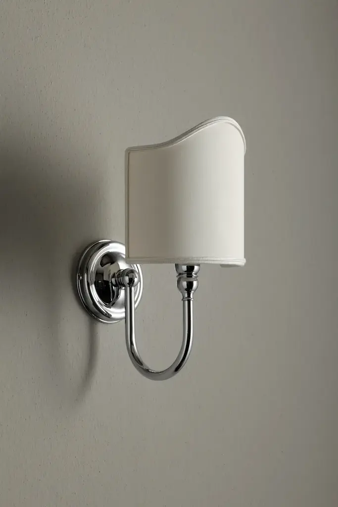 The retro style Bleu Provence wall lamps for bathrooms are made in brass of the highest quality. Large choice of metal finishing (chrome, nickel, copper, gold, bronze,…) matt or glossy. Numerous colors for lampshades available (white, beige, brown, black, red, gray,…).