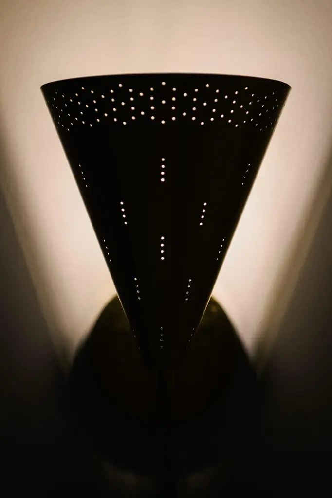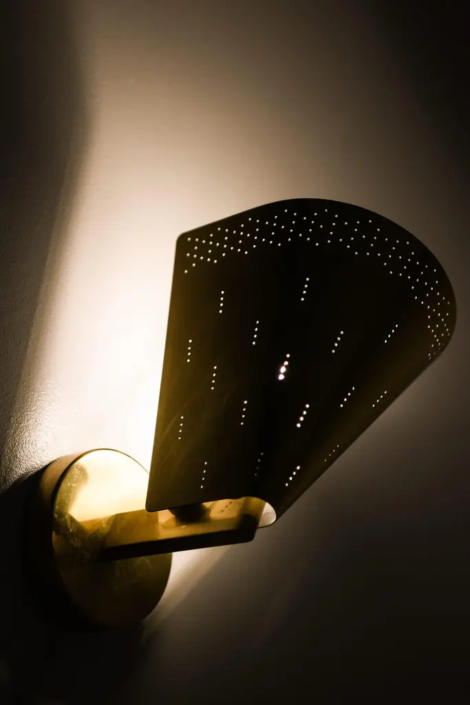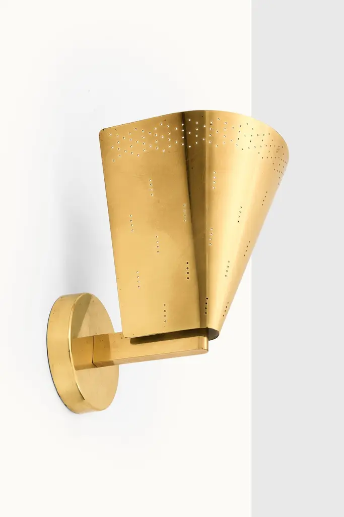 Wall Lamps in Brass by Paavo Tynell, 1950'sAdditional Information:Material: BrassStyle: Mid century, ScandinaviaVery rare wall lamps model K8-1/1Produced by Idman in FinlandDimensions (W x D x H): 17 x 22 x 24 cm