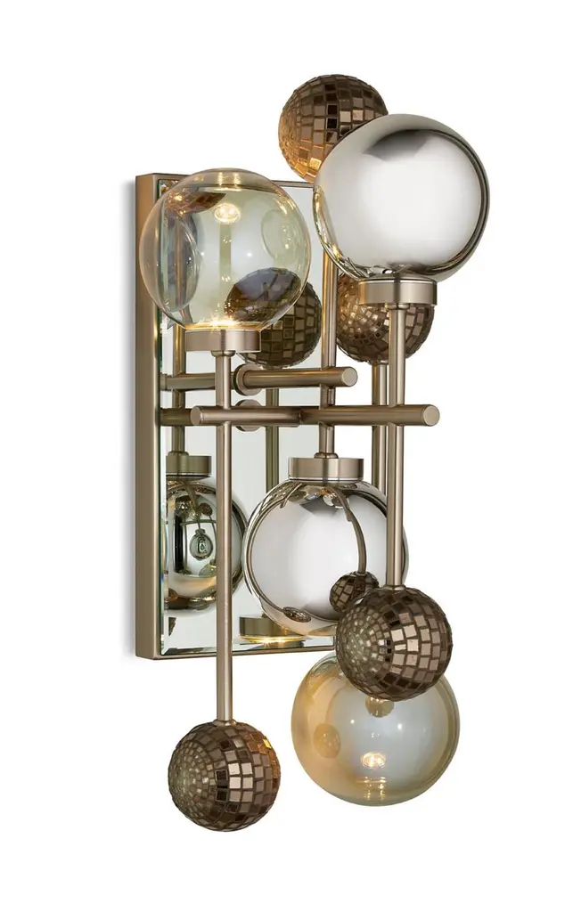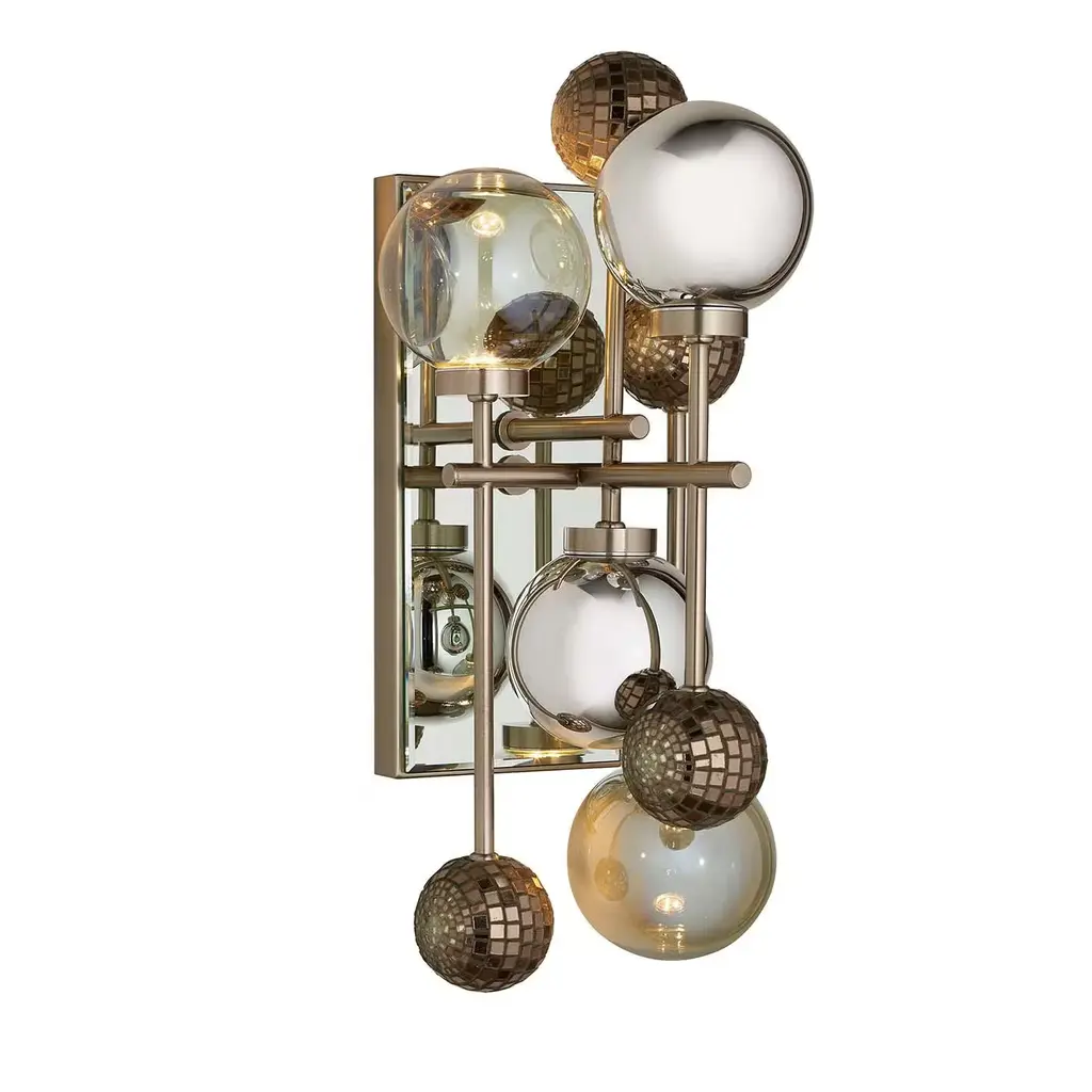 Wall Sconce Brass Frame Nickel Or Brass Finish Glass Spheres Artistic Mosaic