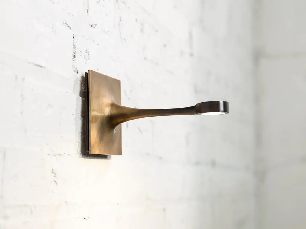 Wall sconce by Gentner DesignDimensions: D 10 x W 16.5 x H 10 cmMaterials: brassAll our lamps can be wired according to each country. If sold to the USA it will be wired for the USA for instance.I wanted to create the appearance of stretching, as if pushing through a sheet of metal.Gentner DesignRooted in a language of sculpture, character defining details, and world renowned craftsmanship, the work is found at the crossroads of design and art.Established in 2011, the namesake furniture label is a rare combination of aesthetic dexterity and mastery of craft resulting in furniture and objects that are expressive, formal, and transcend materiality.The collection is based in metal and incorporates only natural materials such as leather, wood, and glass in unique ways, challenging our assumptions.Christopher GentnerChristopher Gentner, with a BFA in metalsmithing from the Cleveland Institute of Art and apprenticeships under sculptors and jewelers, together with dedication to craft, quickly developed his reputation nationally as a foremost authority of metal fabrication and furniture.One of his crowning achievements was the re-creation and fabrication of the Frank Lloyd Wright Robie House gates.These unique experiences are the foundation of his design philosophy which he employs in his own line of furniture, lighting, and objects.