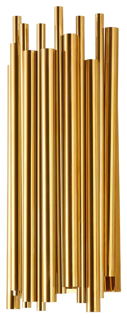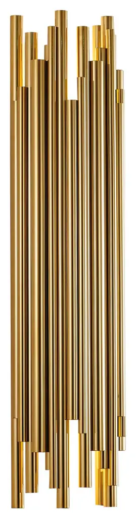 This exquisite wall sconce is in a gold finish. The frame is made out of stainless steel. It can be mounted horizontally or vertically. Lighting Information:Number of bulbs: 2Bulb type: GU10Max wattage: 35Bulb(s) not includedUL CertifiedUL Certification type: Both