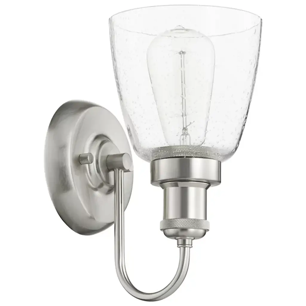 Subtlety with a touch of sophistication. The Wall Sconce No. 548 by Quorum International offers an ideal balance of retro and modern design languages to flatter any interior décor story. Its slender support arm and sculptural details complement vintage themes, while the sleek seedy glass appeals to modern motifs. From one extreme to the other, or in a transitional space, this sconce always fits right in.