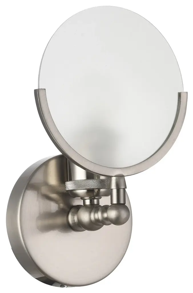 Wall Sconce With Round Frosted Glass Shade, Shiny Nickel