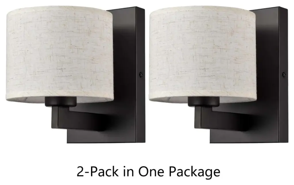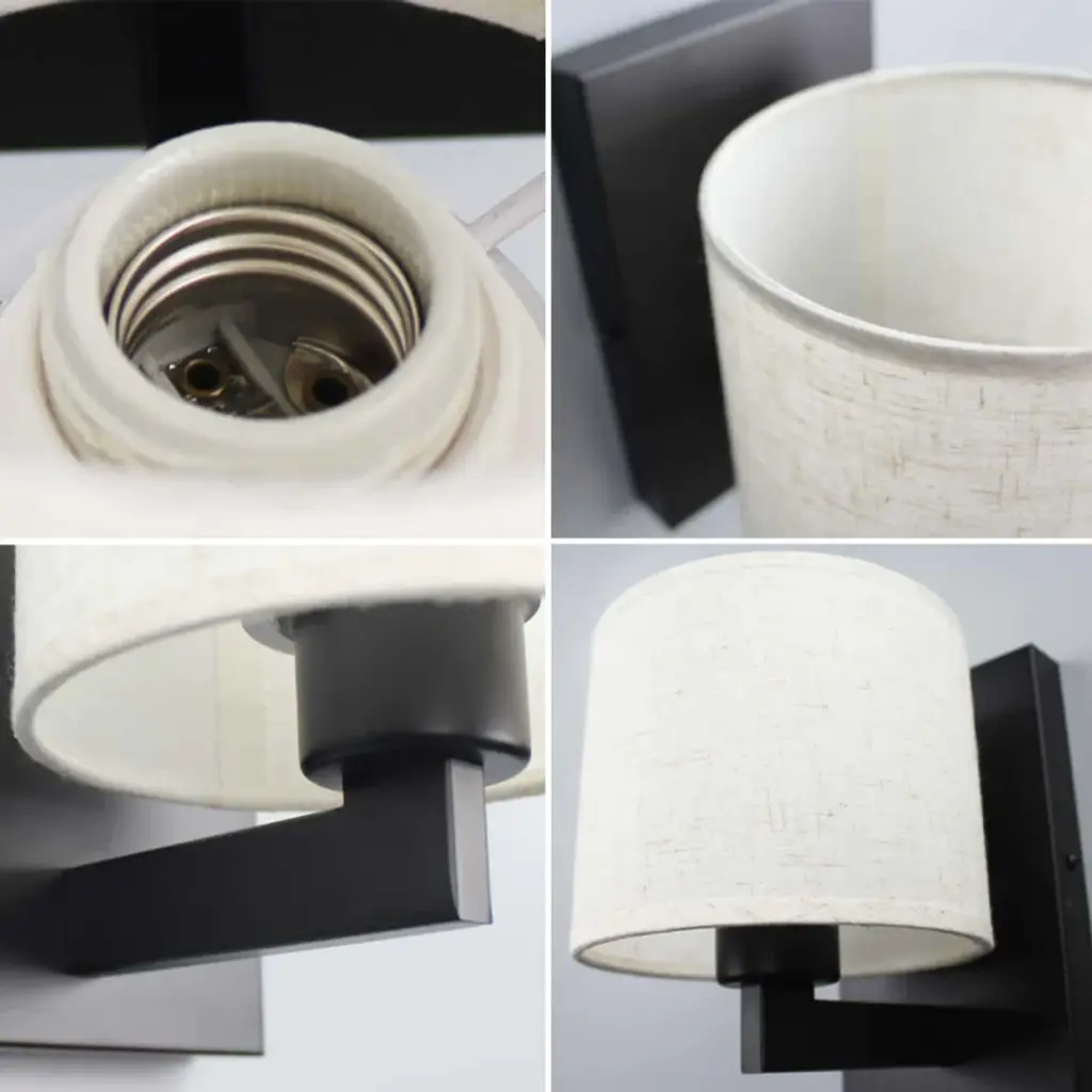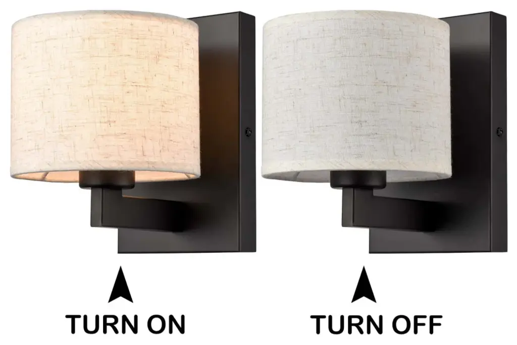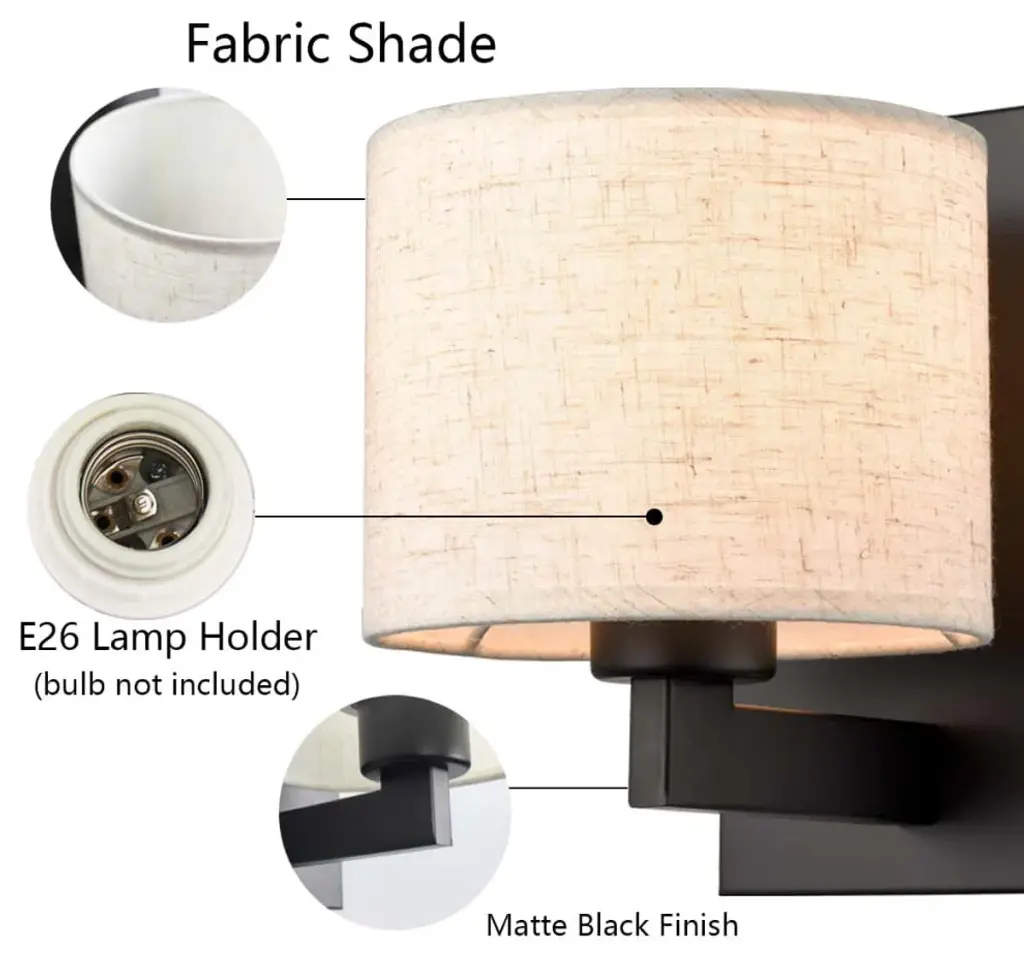 The black wall sconce consists of rectangle metal backplate and a drum-shape beige fabric lamp shade, showing a farmhouse modern style in your interior room. The E26 lamp holder is ceramic glazed crafts, high quality and durable.-Features:ETL ListedHardwired-Dimensions:light:5.9" W x 7.9" Hcanopy:4.9" W x 7.9" H -Bulb Requirement: (Not Included)Voltage: 110VWattage: 40 W MaxBase Type: E26