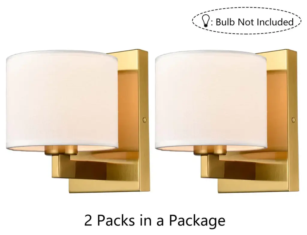 Wall Sconces Set Of 2 Fabric Shade Wall Lamps, Gold