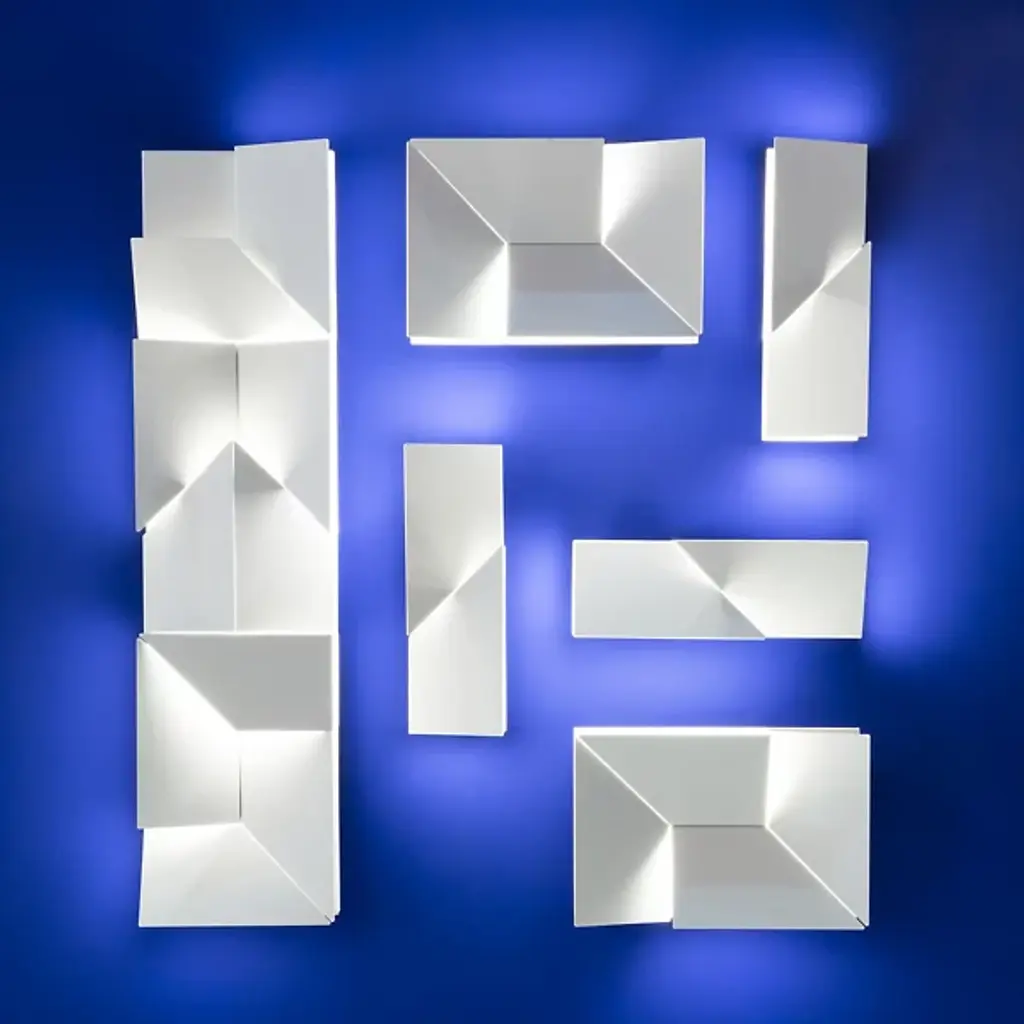 The Charles Kalpakian Wall Shadows Moyen Wall Sconce by Nemo pairs LED light, intriguing shadows and geometric elements for an overall eye-catching, modern lighting experience. Offering up diffused, multidirectional illumination, this piece works well in high-traffic family rooms, studies, and even larger hallways. Constructed from sturdy aluminum coated in matte white powder, this piece will complement most contemporary décor schemes.