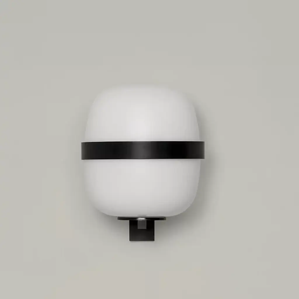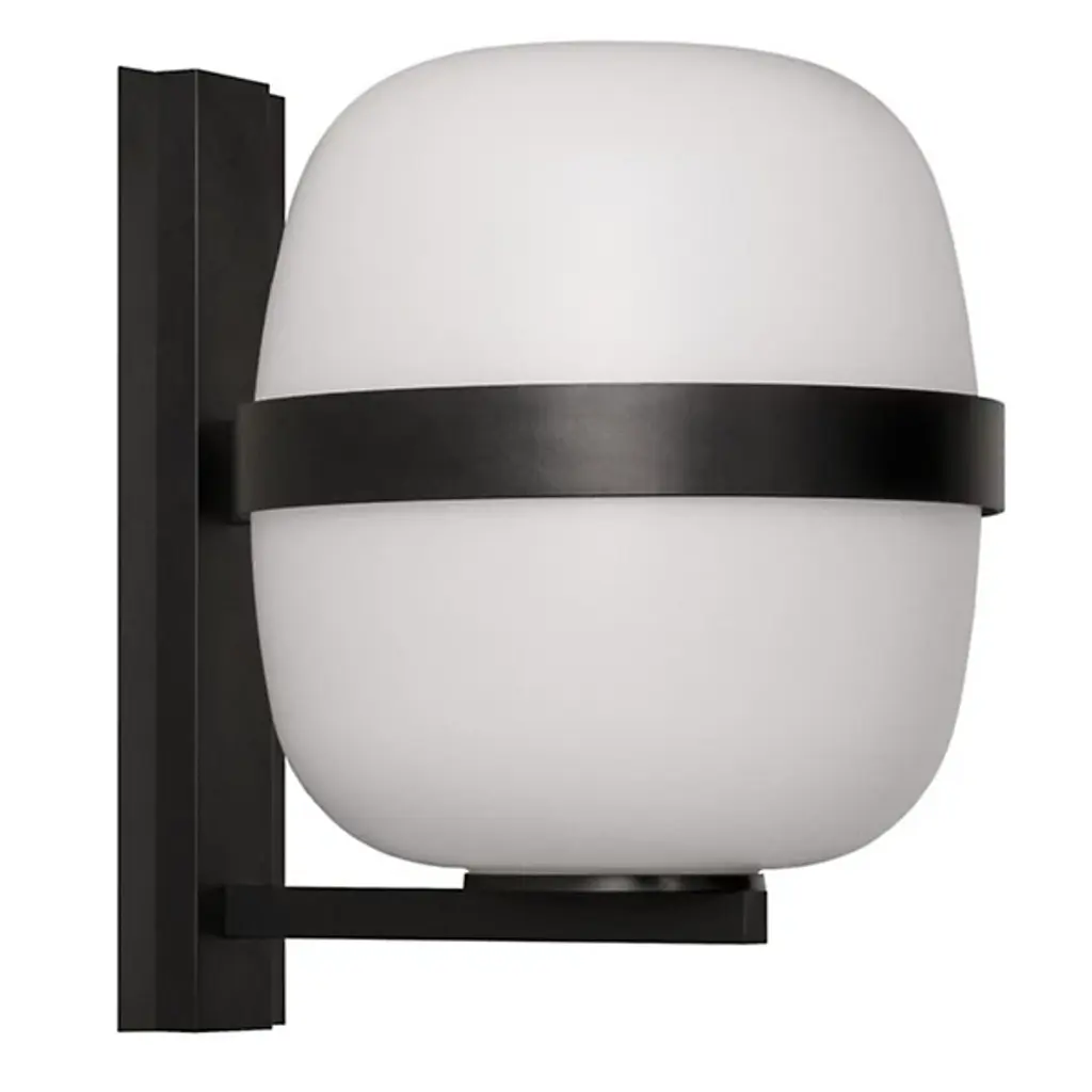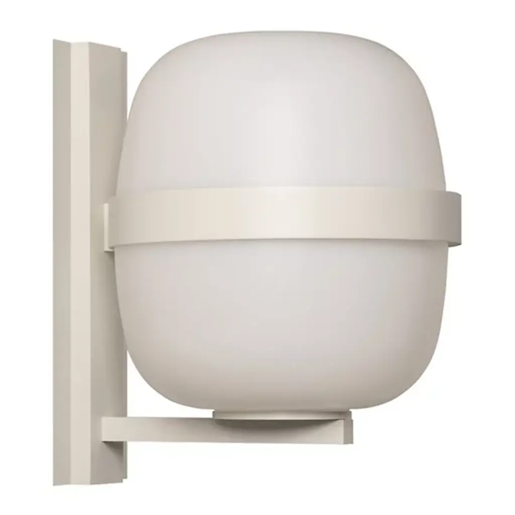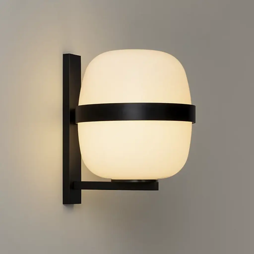 Designed in 1962, the Wally Cesta Wall Sconce from Santa & Cole is a piece of visual comfort, pairing its nurturing light with architecture-complementing lines. Spanish design icon Miguel Mila’s love for inventing things drives his work. Here, Mila synthesizes the essential components of a rattan basket and traditional lantern into a wall-mounted luminaire. The indoor or outdoor piece mounts to the wall with a brief linear backplate. A ring protrudes to wrap the opal lampshade like a rattan strand for a graphic silhouette. This charming shade minimizes glare and displays golden hues. A warm ambient light exits to glaze the surrounding walls.