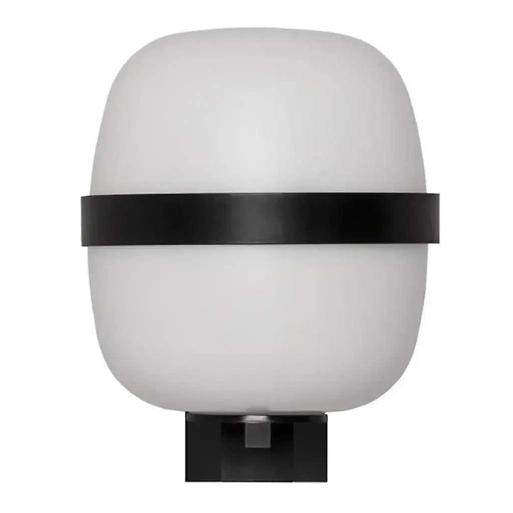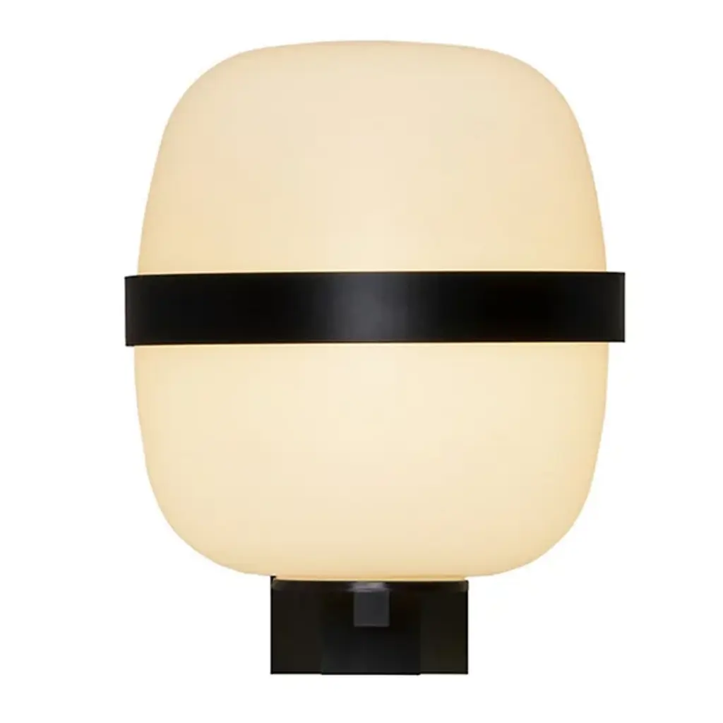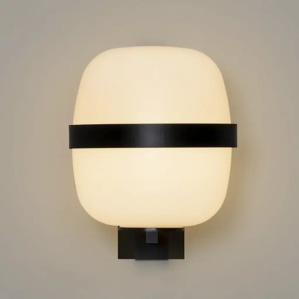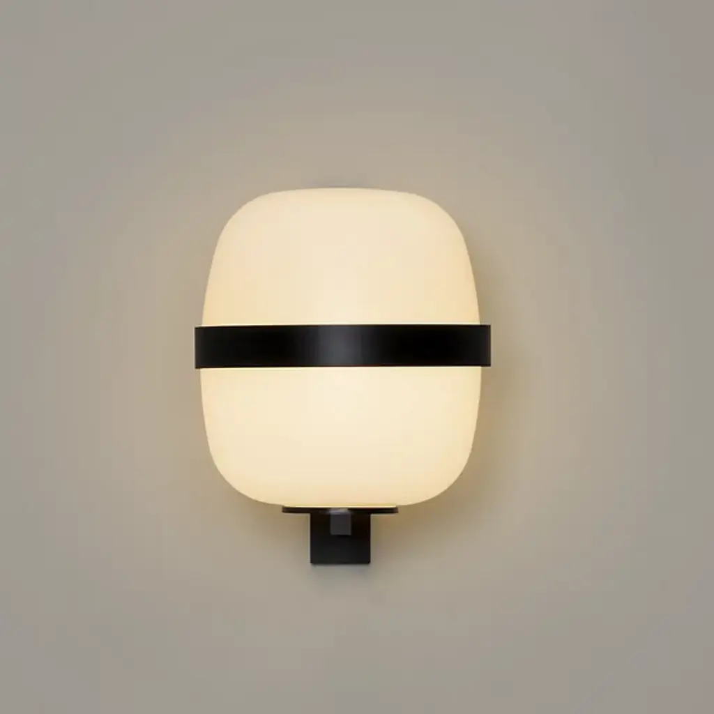 Designed in 1962, the Wally Cesta Wall Sconce from Santa & Cole is a piece of visual comfort, pairing its nurturing light with architecture-complementing lines. Spanish design icon Miguel Mila’s love for inventing things drives his work. Here, Mila synthesizes the essential components of a rattan basket and traditional lantern into a wall-mounted luminaire. The indoor or outdoor piece mounts to the wall with a brief linear backplate. A ring protrudes to wrap the opal lampshade like a rattan strand for a graphic silhouette. This charming shade minimizes glare and displays golden hues. A warm ambient light exits to glaze the surrounding walls.