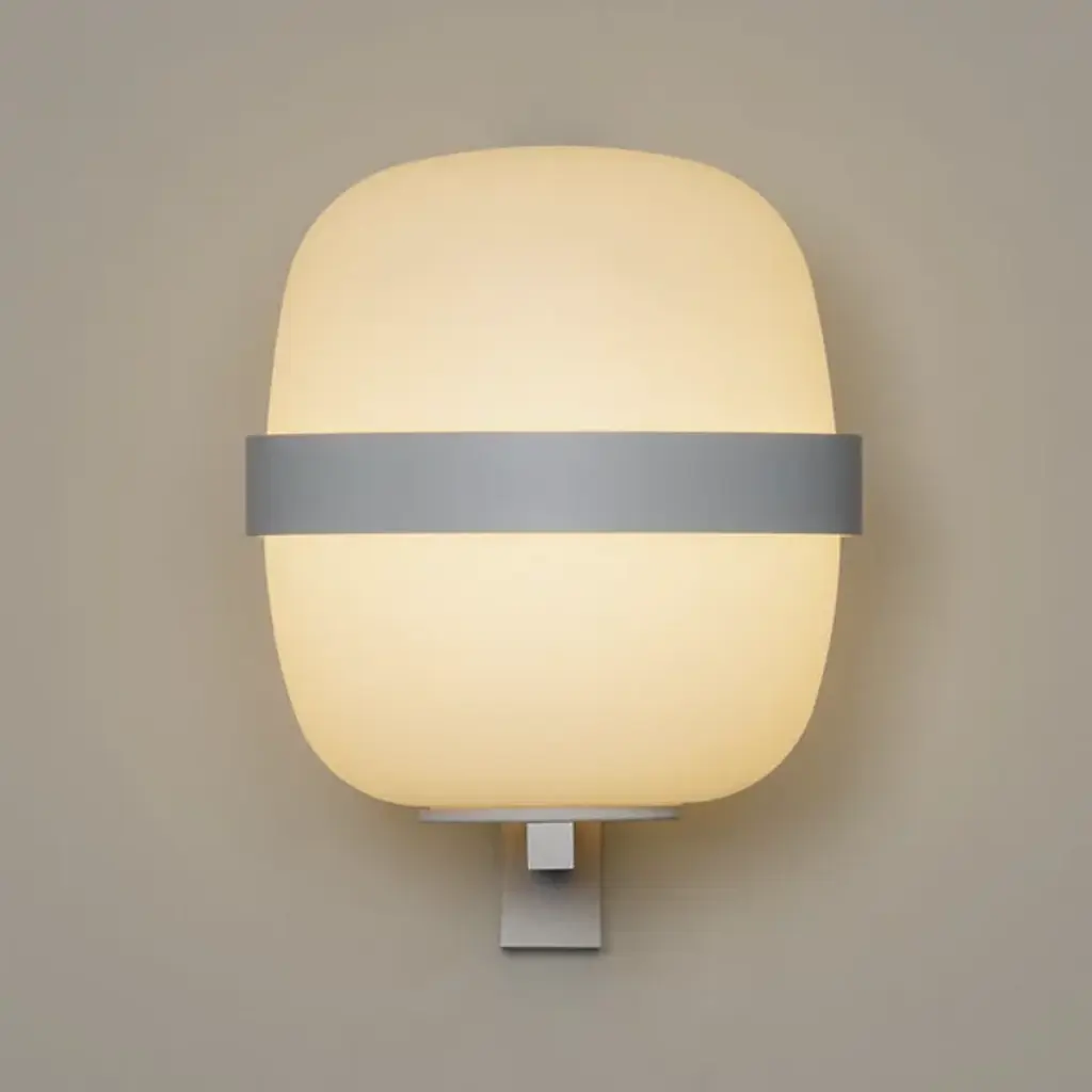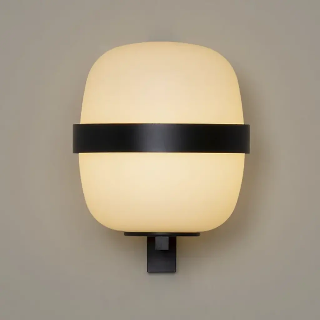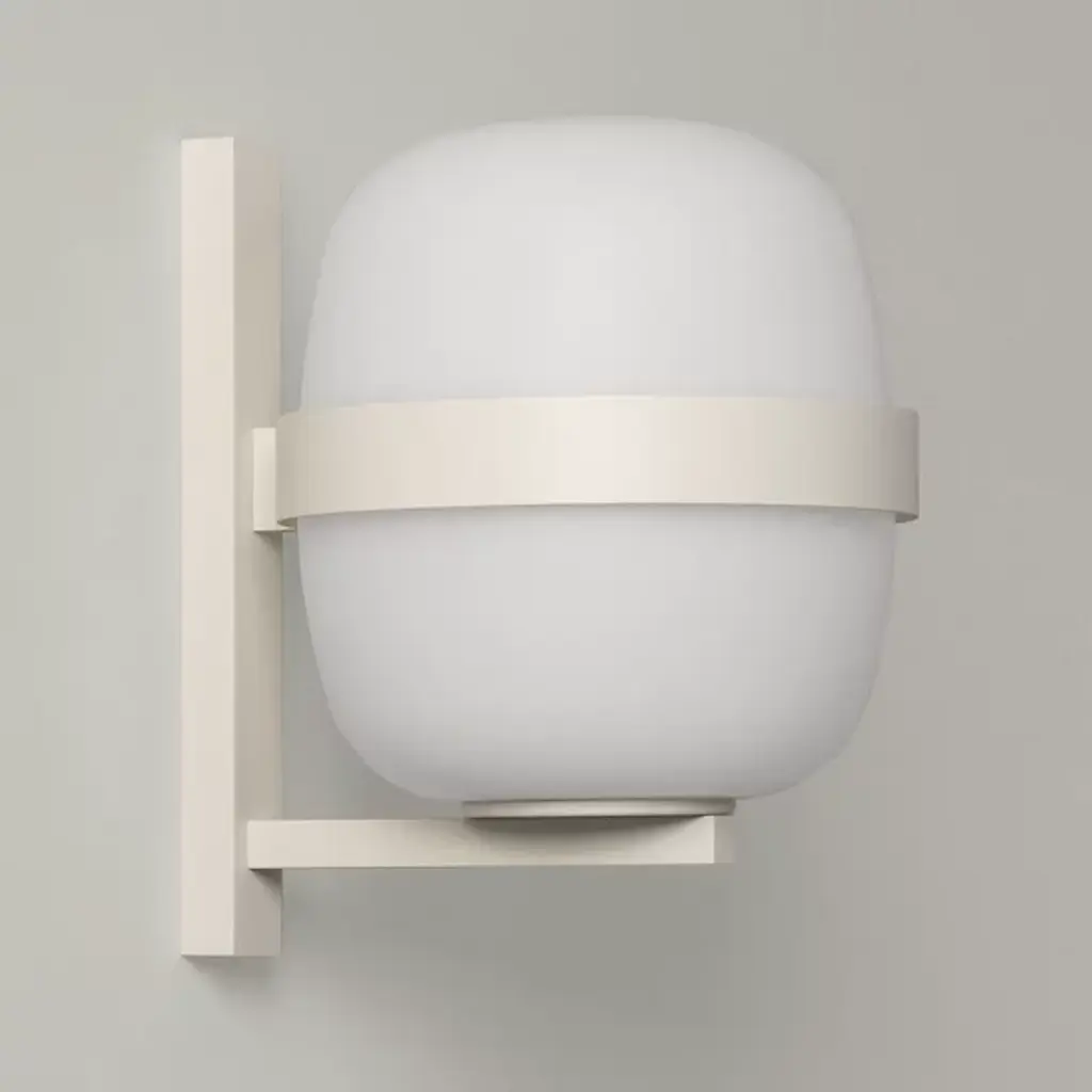 The Santa & Cole Wally Cestita Wall Sconce is exemplary of Miguel Mila’s design sensibilities in 1962, featuring the now iconic white globe shade that is belted with simple metal structural elements. Perched on a slender ledge and attached to a rectangular backplate, Wally is fully secured with a matching metal ring, separating the glass diffuser in to two distinct halves. The resulting light is comfortable to look at, fully diffusing a warm ambience around the fixture.