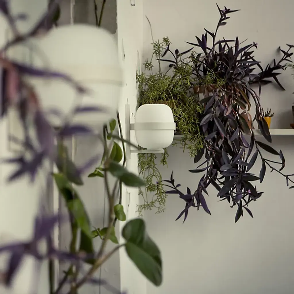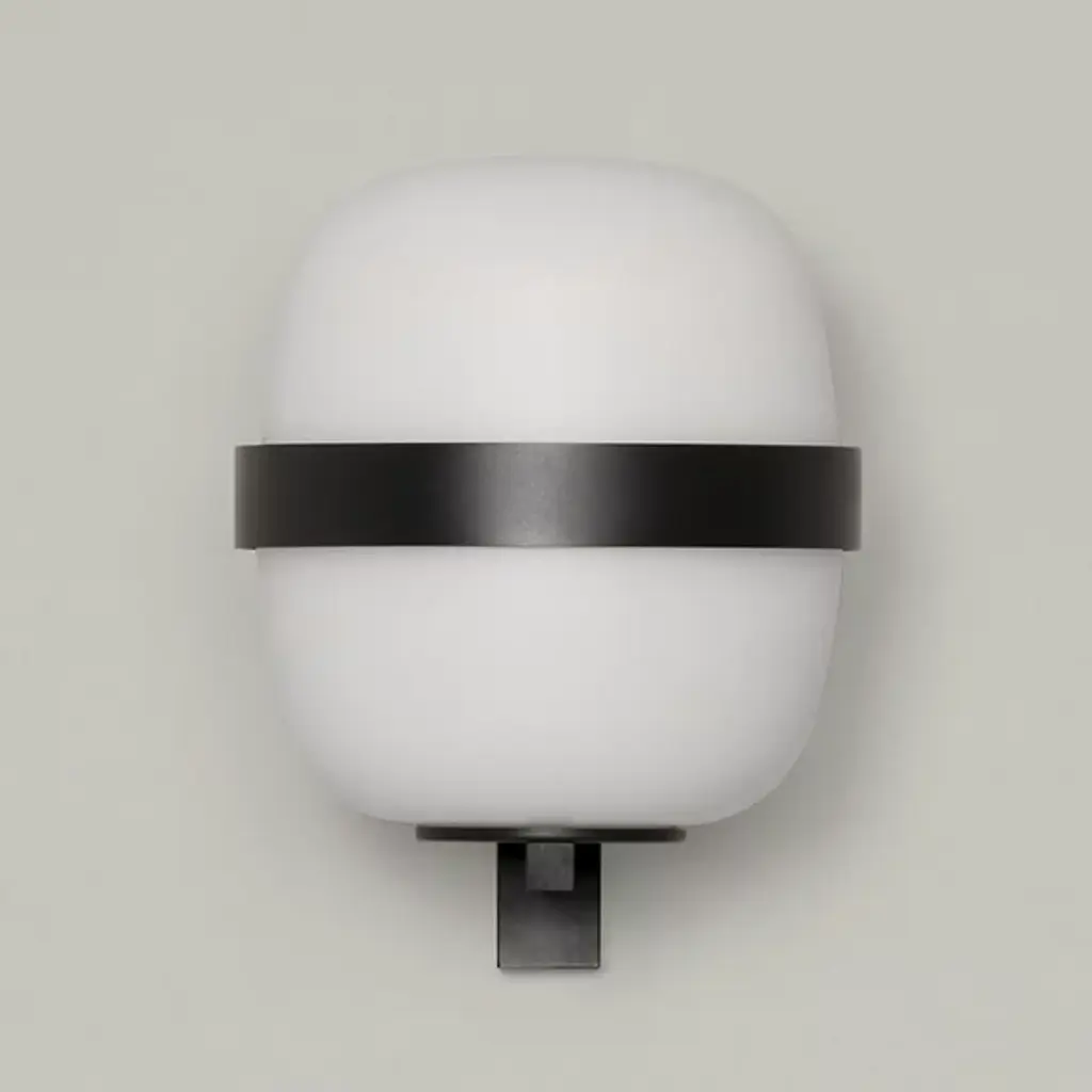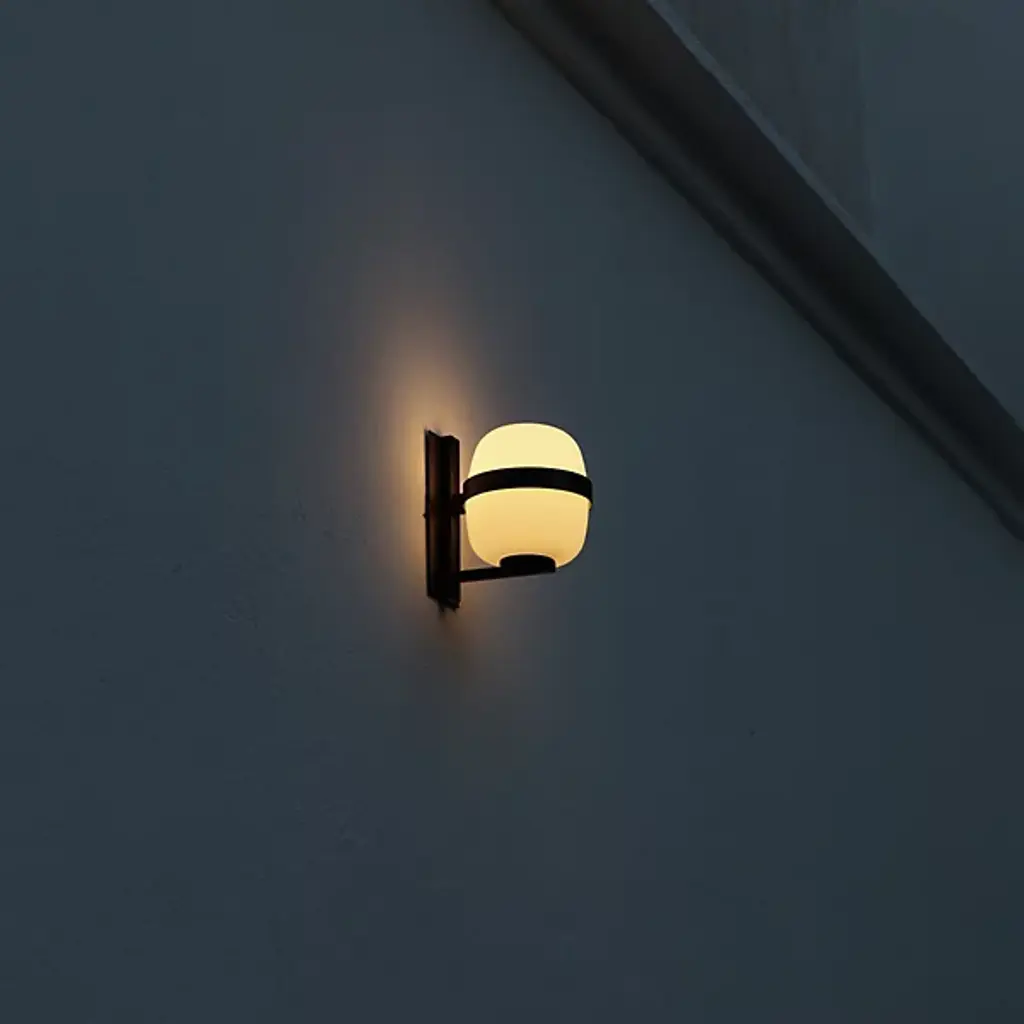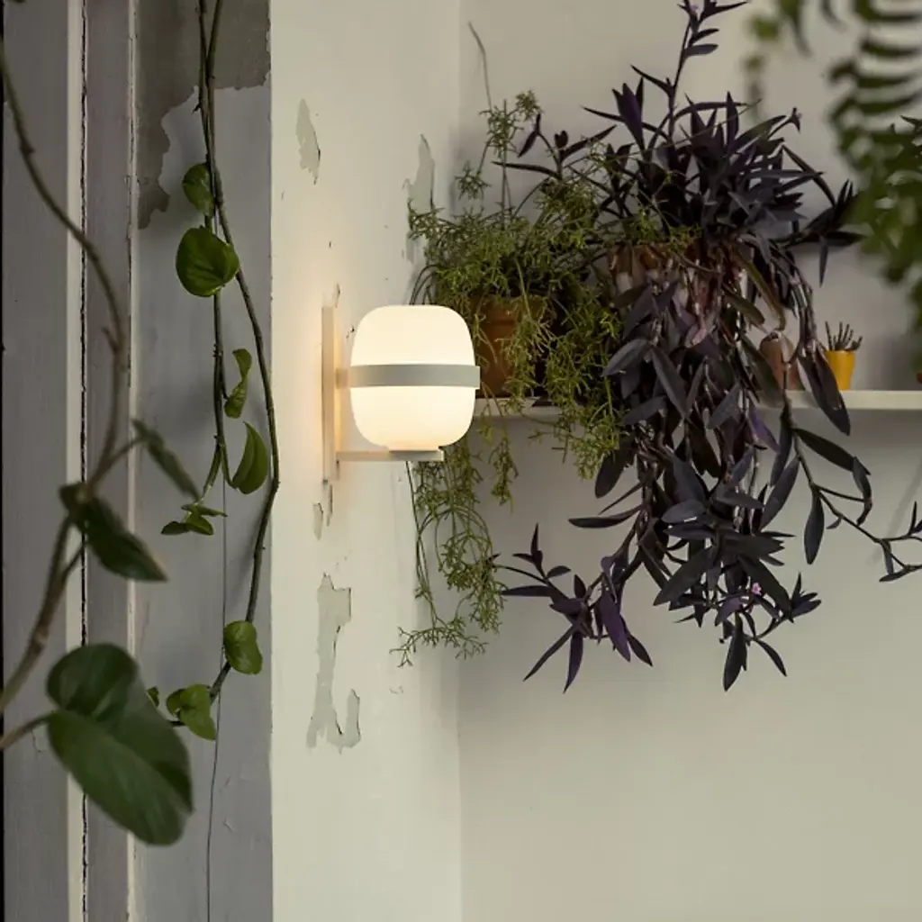 The Santa & Cole Wally Cestita Wall Sconce is exemplary of Miguel Mila’s design sensibilities in 1962, featuring the now iconic white globe shade that is belted with simple metal structural elements. Perched on a slender ledge and attached to a rectangular backplate, Wally is fully secured with a matching metal ring, separating the glass diffuser in to two distinct halves. The resulting light is comfortable to look at, fully diffusing a warm ambience around the fixture.