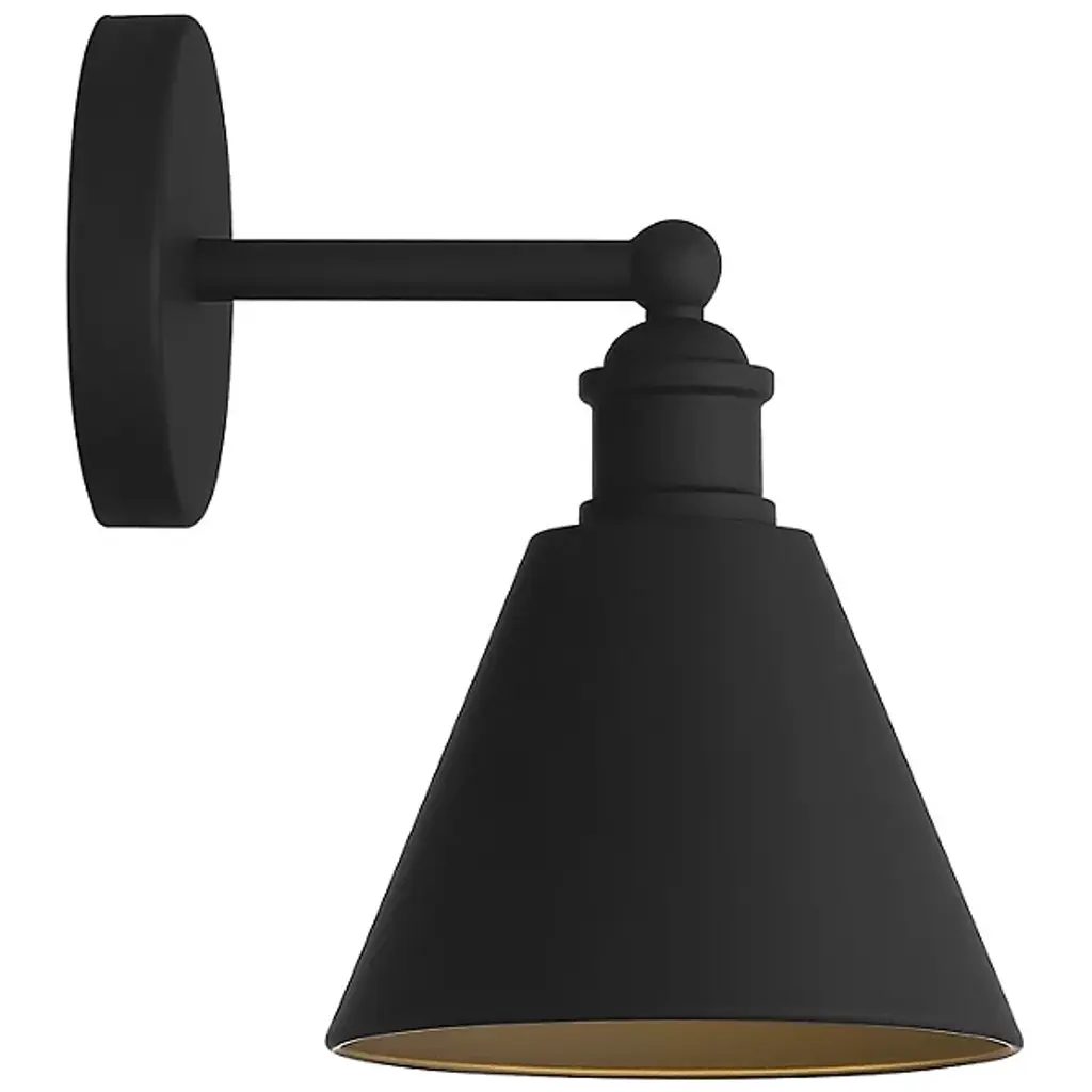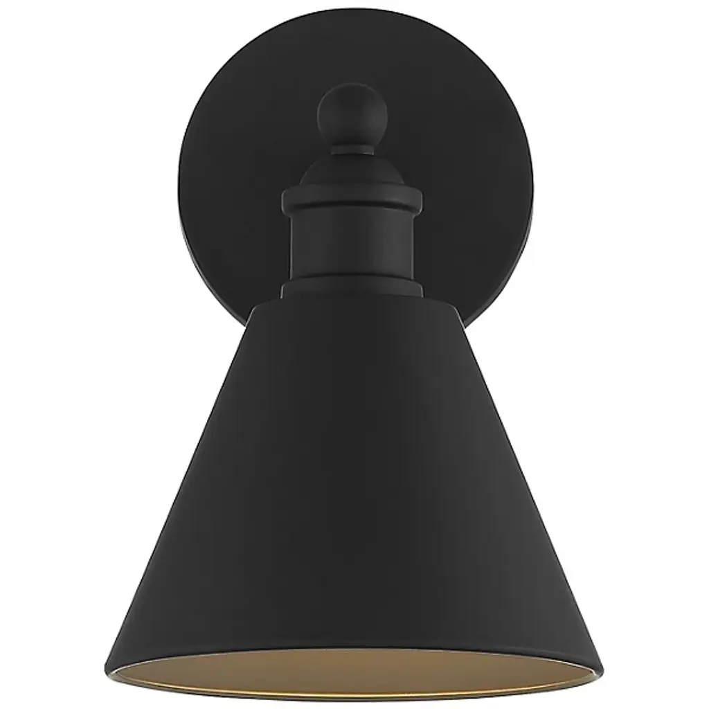 The Walt Wall Sconce from Alder & Ore showcases a striking all-matte black finish, from the backplate to the metal shade, adding a touch of inky intrigue to any room. Designed to make a bold statement, this sconce infuses your decor with a captivating and stylish element. Its sleek, modern design enhances the ambiance of any space, making it an excellent choice for those seeking to incorporate a touch of dark elegance into their interior.