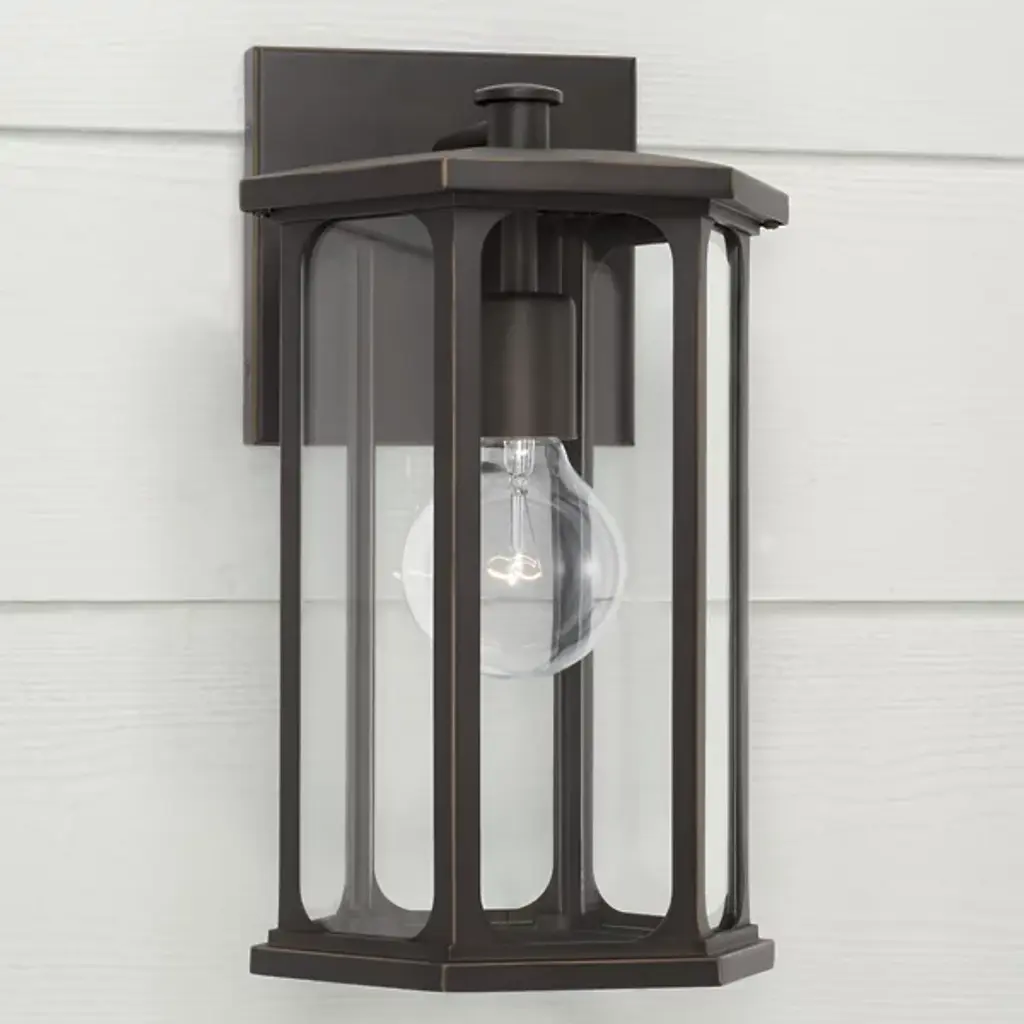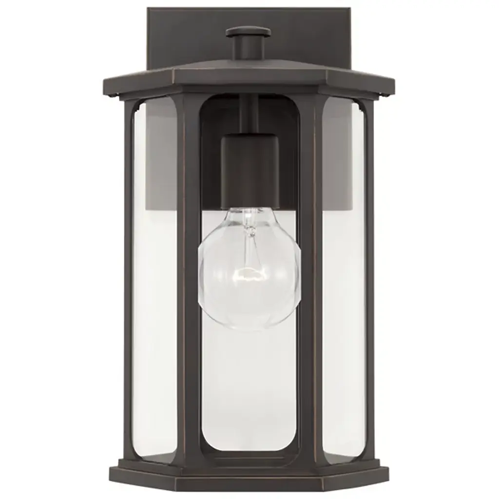 Welcome one into the home with the well-rounded Walton Outdoor Wall Sconce by Capital Lighting. The fine metal accents, soft curves, and hexagonal shapes on display offer a fresh take on traditional forms. A compact backplate secures this light fixture at your wall for great versatility. It sports robust materials designed to withstand the harshest outdoor weather conditions.
