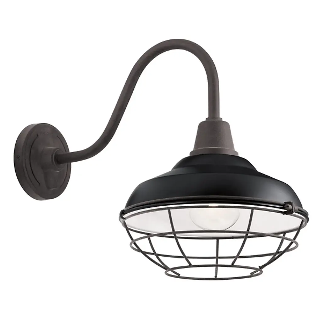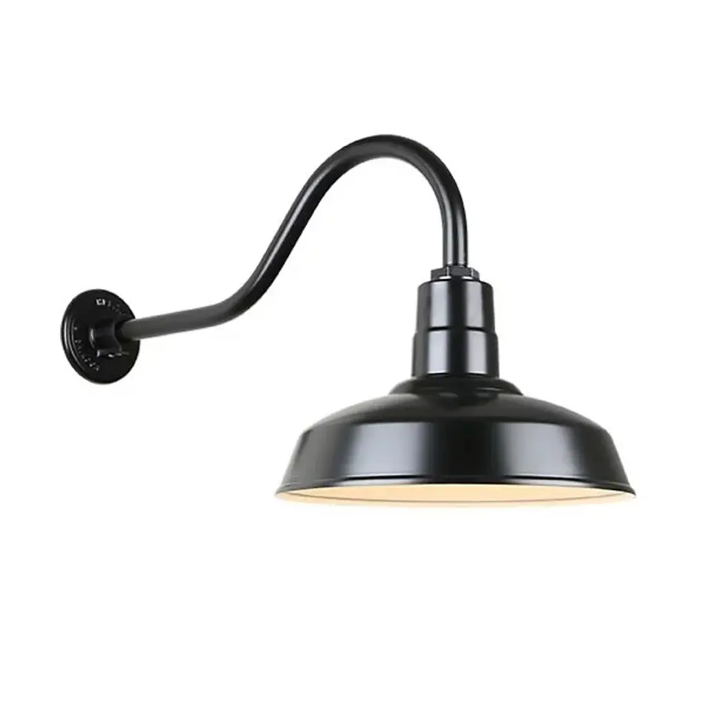 A touch of the familiar goes a long way in establishing a timeless lighting experience. The Warehouse A Arm Outdoor Wall Sconce from Hi Lite brings a familiarity in its traditional-inspired silhouette. Hi Lite proudly stamps each piece with their signature lettering on a solid circular metal backplate. From it, a slender arm moves forward with a gentle lean that can be seen as a seductive question mark. A wide tapered shade with white surface lining gives its light a spacious and glare-free feel. A singular bulb transmits its warmth through the wide opening for a pleasant down glow.