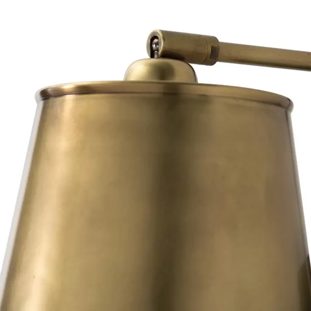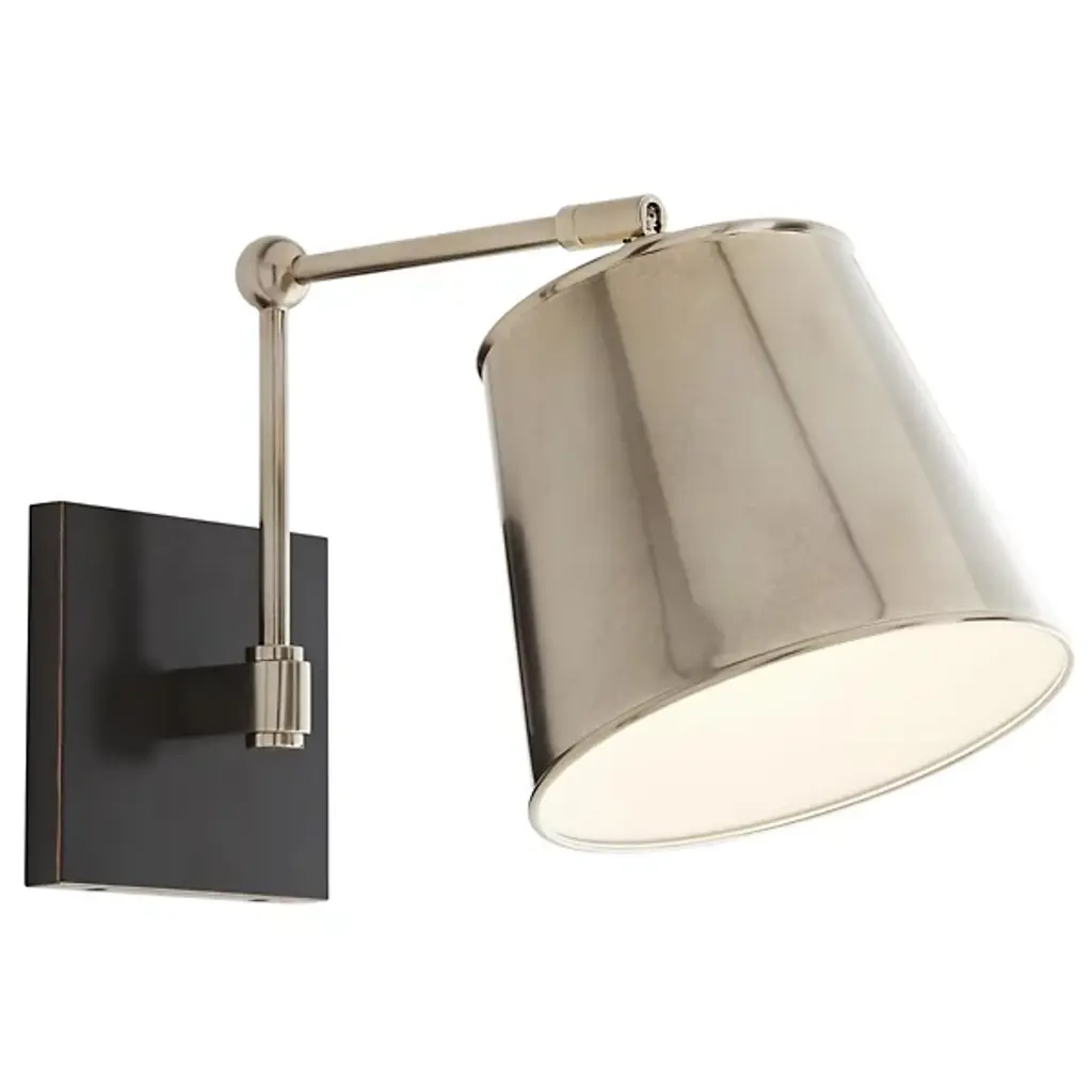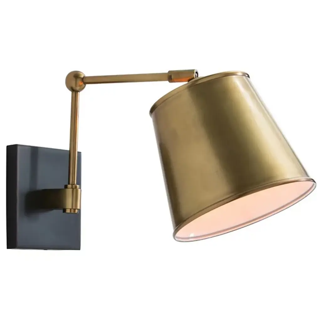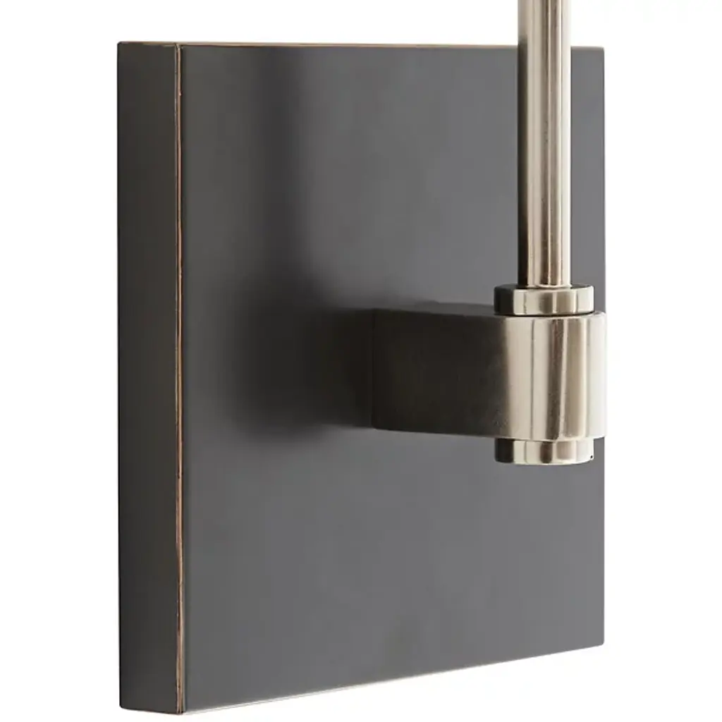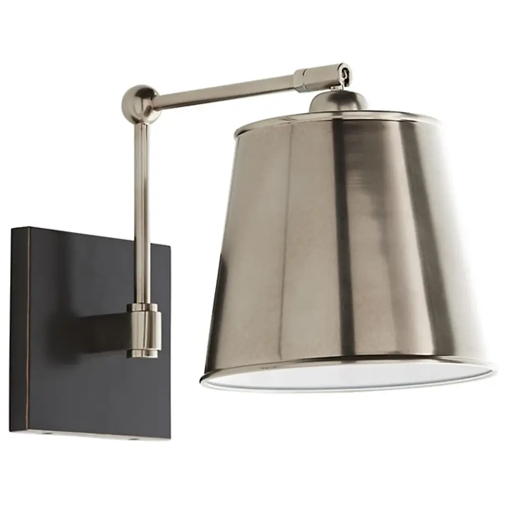The Arteriors Watson Wall Sconce showcases modern sensibility and mid century modern styling blended together. Simple yet effective, the dark backplate contrasts against the rich finish throughout the rest of the piece. The all metal shade is adjustable, perfect for spotlighting your favorite art piece or creating a cozy reading corner in your living room.