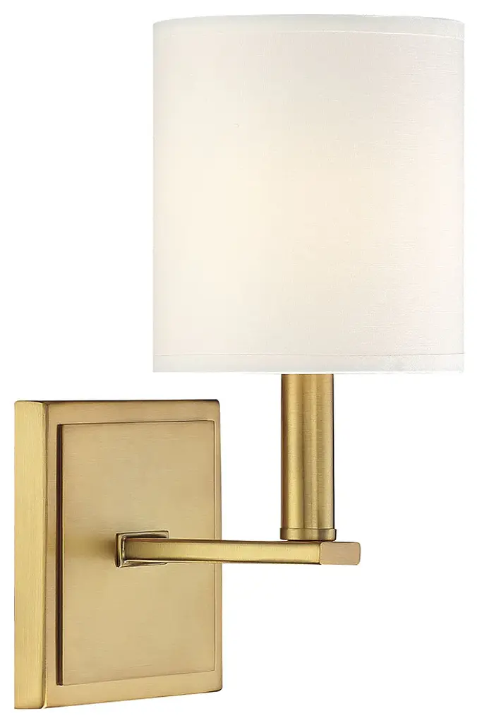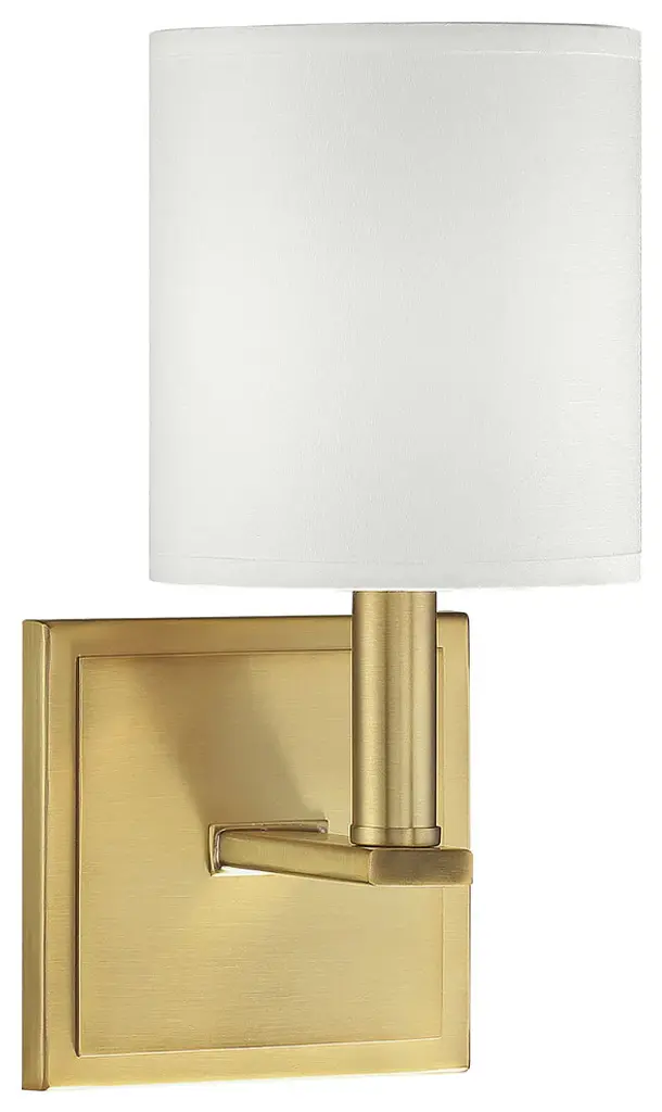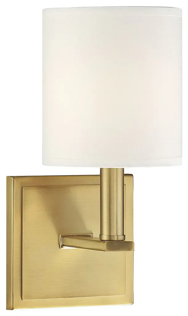 Chic and contemporary! The Waverly wall sconce is a sleek fixture to add a beautiful, polished layer of light to your home''s overall interior lighting design. Plus, the clean lines and soft glow create a subtle and serene mood. The frame has an outlined, square wall plate and a bold, L-shaped light arm, with a lustrous, warm brass finish. A streamlined, cylindrical white shade encloses one 60W, C-style bulb for lovely, glare-free illumination. The Waverly''s elegance blends well with many decor styles, such as modern, farmhouse, and transitional. And the sconce measures 5" wide and 11" high, extending 6.5" from the wall an ideal fit for a bathroom, bedroom, dining area, living room, kitchen, family room, foyer, media room, office, or hallway. Bulb Type: C Bulbs Needed: 1 Bulbs Included: No Wattage: 60 UL Listed: UL Listed Hardwire or Plug: Hardwire