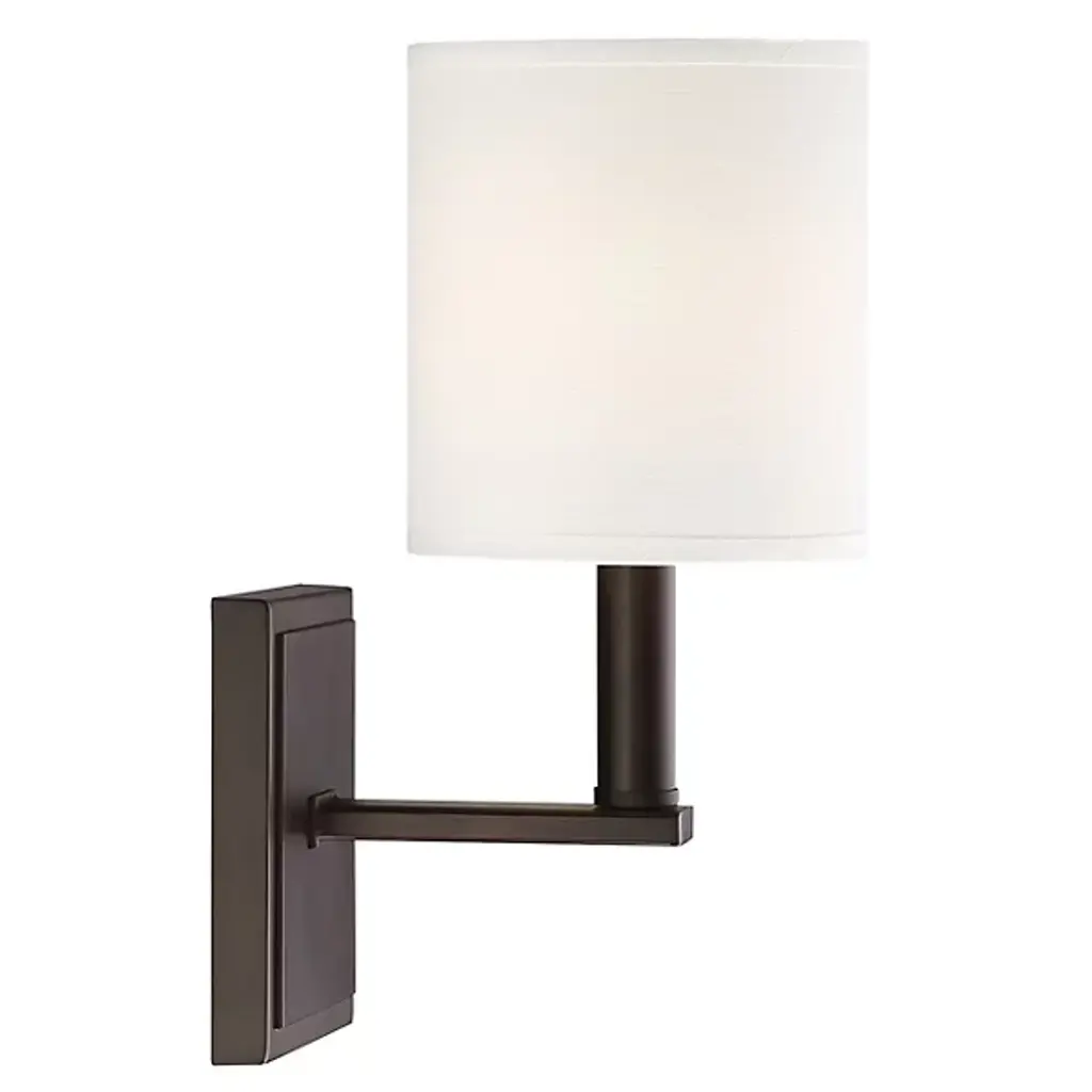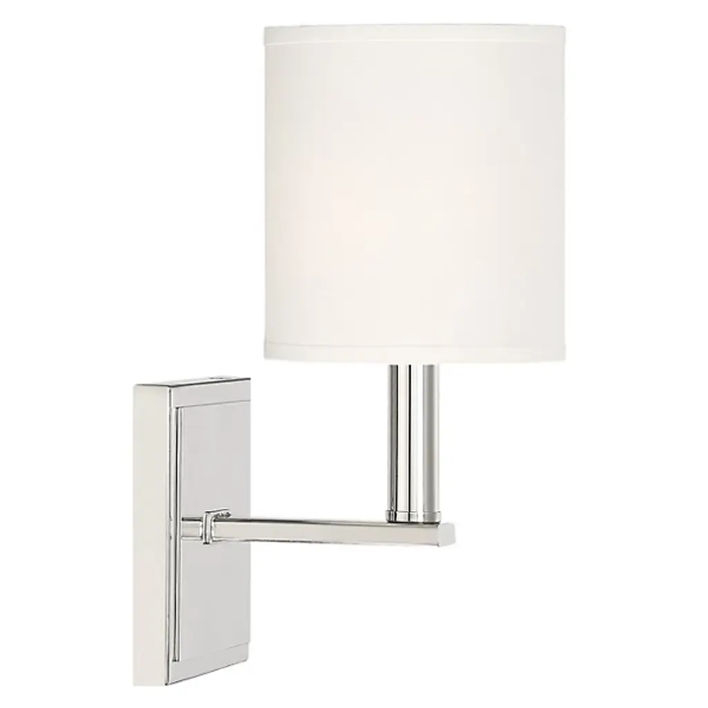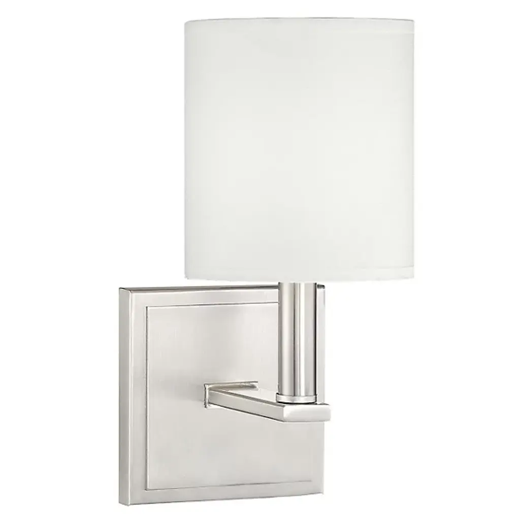 Dot your home with the upstanding elegance of the Waverly Wall Sconce from Savoy House. Entryways, hallways, and living rooms are the perfect candidates for its sumptuous illumination. A fabric shade softens the light from an incandescent bulb into a glare-free glow through a timeless drum form. It sits above a candle-style lamp holder that stands neatly above a metal ledge. A securing metal backplate proclaims an unbridled sophistication across your wall through a refined design of concentric square shapes.