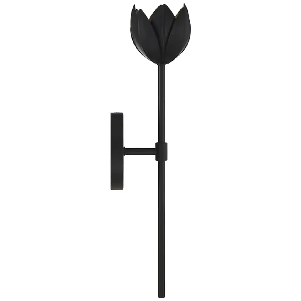 The Wayne Wall Sconce from Alder Ore beautifully combines organic and modern styles, creating a captivating addition to any home decor. Finished in matte black, this sconce features a design that blossoms forth elegantly, providing a unique aesthetic touch. Illuminated by a G9 LED light bulb, it offers both style and energy-efficient lighting. This wall sconce blends functionality with artistic design and adds a contemporary yet natural flair to your space.
