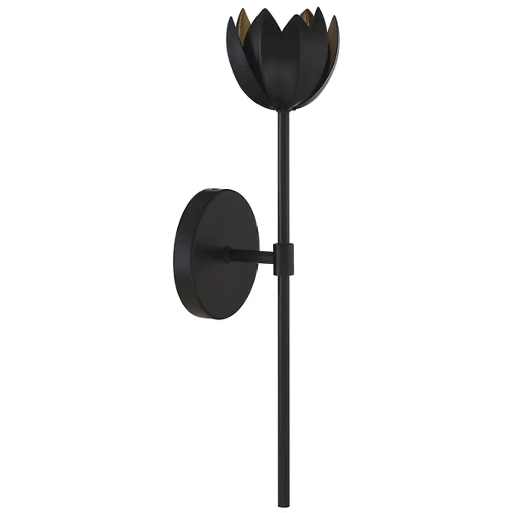 The Wayne Wall Sconce from Alder Ore beautifully combines organic and modern styles, creating a captivating addition to any home decor. Finished in matte black, this sconce features a design that blossoms forth elegantly, providing a unique aesthetic touch. Illuminated by a G9 LED light bulb, it offers both style and energy-efficient lighting. This wall sconce blends functionality with artistic design and adds a contemporary yet natural flair to your space.