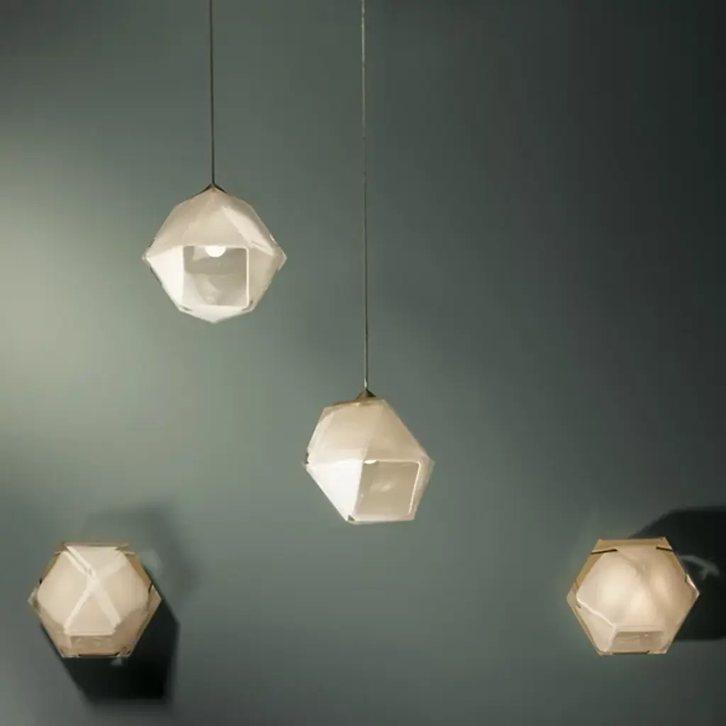 Designers Gabriel Kakon and Scott Richler's jewelry-making background and continuous exploration of playful shapes come at a head in the optically brilliant, gem-inspired Gabriel Scott Welles Double-Blown Glass LED Wall / Ceiling Light. The architecture of the home is the wearer of the bedazzling form. It stands out with a focused silhouette across the wall thanks to a low-profile steel backplate. The double-blown glass shade invites a glance from every angle as captivating geometry cuts its surface. Like a jewel emphasized by a display light, an LED lamp inside shines through the facets delivering highlights that come across in a rich ambient glow.